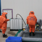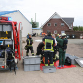 Am Dienstagnachmittag kam es in einer Lauenburger Logistik Firma zu einem Zwischenfall. Ein Industrieregal, in welchem unter anderem auch Güter mit Gefahrenpotential lagerten, drohte aus bislang ungeklärten Gründen einzustürzen. Mitarbeiter informierten daraufhin die Feuerwehr. Kurze Zeit später war diese mit einem Löschzug vor Ort. Wehrführer Lars Heuer ging vor Ort zur Erkundung vor, besprach sich mit dem Personal und entschied sich, kein unnötiges Risiko einzugehen. Unter Atemschutz ging ein Angriffstrupp ins Innere der Lagerhalle vor und meldete der Einsatzleitung das Schadensbild. Man entschied sich, verrutschte Behälter umzufüllen. Für diese Aufgabe kam der Löschzug-Gefahrgut zum Einsatz. Mit Spezialpumpen wurden die Flüssigkeiten in geeignete Behälter umgefüllt. Dabei schützten sich die Einsatzkräfte mit Chemikalienschutzanzügen, eine übliche Vorgehensweise. Schließlich konnten die Gebinde aus dem Regal entnommen werden. Bei einem Zusammensturz hätte es zur Vermengung von verschiedenen Chemikalien kommen können, welche ungewollte Reaktionen auslösen. - Durch das vorausschauende Handeln blieb dies jedoch aus. - Eine Gefahr für Anwohner bestand zu keiner Zeit.