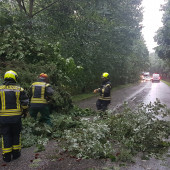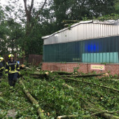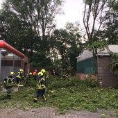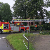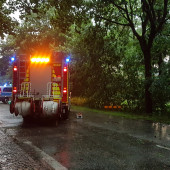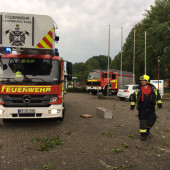 Am Donnerstagmittag zog ein schweres Unwetter über den Süden Schleswig-Holsteins, auch die Stadt Lauenburg und umliegende Gemeinden blieben nicht verschont. Zunächst wurde das HLF zu einem umgestürzten Baum auf der Bundesstraße 5 in Richtung Schnakenbek alarmiert. Noch auf der Anfahrt wurde Wehrführer Lars Heuer über weitere Einsatzstellen im Stadtgebiet informiert. Er ließ Vollalarm auslösen, da heißt das alle Meldeempfänger der Mitglieder auslösen, nicht wie zuvor nur einzelne Alarmgruppen. – Das HLF kümmerte sich um die Einsatzstelle auf der B5, mit der Motorkettensäge zerkleinerte die Besatzung den Stamm des Baumes. Schließlich wurde er mit der Seilwinde des HLF aus der Gefahrenzone gezogen. Für die Räumarbeiten wurde die Bundesstraße für kurze Zeit voll gesperrt. Weitere Fahrzeuge arbeiteten Einsatzstellen im Stadtgebiet ab. Unter anderem war das TLF und die Drehleiter in der Berliner Straße im Einsatz. Hier war ein Baum abgeknickt und auf das Dach eines Gewerbebetriebes gestürzt. Auch dieser konnte durch das beherzte Eingreifen der Feuerwehr schnell beseitigt werden. Am Abend soll ein weiteres Unwetter folgen. Wir hoffen, von diesem verschont zu bleiben.