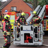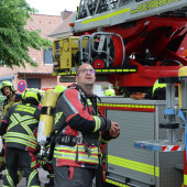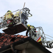 Zur Unterstützung der Feuerwehr Geesthacht rückte am Sonntagnachmittag die Drehleiter gemeinsam mit dem LF 10 aus. In der Mühlenstraße war es zu einem Dachstuhlbrand gekommen. Die Kräfte aus Geesthacht waren bereits im Einsatz und hatten ihre Drehleiter in einer Nebenstraße in Stellung gebracht. Lauenburgs Wehrführer Lars Heuer machte sich mit dem KdoW bereits vor den Großfahrzeugen auf den Weg um den Einsatz der Lauenburger Kräfte mit dem Einsatzleiter abzustimmen. Ersten Angaben zufolge, sollte sich das Feuer von einem Balkon über den Dachunterschlag in den Dachstuhl ausgebreitet haben. Die Drehleiter sollte vor dem Objekt in Stellung gebracht werden um das ausbreiten der Flammen im vorderen Bereich des Hauses einzudämmen. Um ausreichend Atemschutzträger bereitstellen zu können rückte das LF 10 mit 3 Trupps aus. Die Besatzung der Drehleiter rüstete sich mit Atemschutz aus, um sich gegen den gefährlichen Brandrauch zu schützen. Mit einem Einreißhaken wurden Dachpfannen gelöst um an darunter liegende Glutnester abzulöschen. Der Einsatz zog sich über mehrere Stunden hin. Schließlich konnte der Rückbau beginnen, sodass alle Kräfte einrücken konnten.