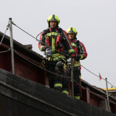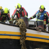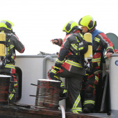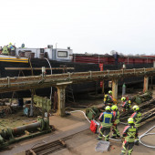 Am Donnerstagmittag rückte die Feuerwehr zur Lauenburger Werft aus. Nach Arbeiten auf einem Binnenschiff, welches für Wartungsarbeiten an Land lag, kam es zu einem Feuer. Die Werftarbeiter bemerkten die Rauchentwicklung schnell und versuchten, das Feuer noch mit Wasser zu löschen. Doch an ein Betreten des unter Deck liegenden Raumes war nicht zu denken, zu dicht war der Qualm, der aus der Luke stieg. Auf der Anfahrt rüsteten sich bereits 2 Trupps auf dem LF 20 mit Atemschutz aus. "Bei der Brandbekämpfung auf einem Schiff sind mehr Kräfte im Angriffstrupp üblich", erklärt Einsatzleiter Dennis Lühr. Am Einsatzort erkundete der Fahrzeugführer vom LF 20 die Lage. Arbeiter zeigten die Zuwegung, erklärten was passiert war. Über eine Gangway konnte das Schiff betreten werden. Am Bug des Schiffes stieg Rauch aus zwei Luken die unter Deck führten. Der Angriffstrupp ging unter Atemschutz vor, mittels Wärmebildkamera wurde der Brandherd gesucht. Schließlich konnten mehrere verkohlte Gegenstände aus dem Schiff geräumt und abgelöscht werden. Schließlich konnte: "Feuer aus" an die Rettungsleitstelle gemeldet werden. Verletzt wurde glücklicherweise niemand.
