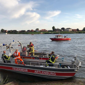 Ein Großaufgebot an Rettungskräften wurde am Sonntagabend auf die Elbe in Höhe Schnakenbek alarmiert. Anrufer meldeten Schwimmer in der Strömung, die nicht mehr an Land kommen würden. Sofort wurden von der Leitstelle in Bad Oldesloe unter dem Stichwort Person im Wasser die zuständigen Kräfte alarmiert. Neben der Ortswehr Schnakenbek kamen auch die Wehren aus Krüzen und Lauenburg zum Einsatz. Später auch die Feuerwehr Geesthacht, welche Flussaufwärts fuhr. Nur kurz nach den Schnakenbekern war auch Lauenburgs Wehrführer Lars Heuer an der gemeldeten Einsatzstelle im Nachbarort. Nach einer ersten Lagebesprechung mit dem Einsatzleiter vor Ort trafen auch das HLF und TLF ein. Aus dem Lauenburger Hafen machten sich derweil das Rettungsboot sowie das Arbeitsboot Elbe 1 auf den Weg. Zwei Personen konnten sich bereits aus eigener Kraft an Land retten. Zunächst war die Lage jedoch unübersichtlich, da die Dritte Person nicht auffindbar war. Das Rettungsboot der Lauenburger Wehr war als erstes vor Ort, suchte anschließend das gegenüberliegende Ufer ab. Dort fand man die Dritte vermisste Person. Auch Feuerwehren aus Niedersachsen waren alarmiert worden. So stand eine Vielzahl von Rettungsbooten zur Verfügung. Nachdem die alle betroffenen Identifiziert waren, rückten die ersten Einsatzkräfte wieder ab. – Jedoch meldete sich plötzlich eine Anwohnerin, welche sich sorgen um einen Hobby-Taucher machte, der mutmaßlich ebenfalls in der Elbe sei. Erneut begannen die Einsatzkräfte mit Suchmaßnahmen, bis sich kurze Zeit später herausstellte, dass der Gesuchte in Sicherheit war. Schließlich konnten alle Kräfte nach rund 1,5 Stunden einrücken.