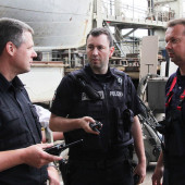 Am Mittwochmorgen alarmierte die Rettungsleitstelle die Feuerwehren aus Lauenburg und Buchhorst, sowie den Wasserrettungszug Süd nach Lauenburg. „Schiff droht zu sinken, 4 Personen an Bord“ hieß es in der Meldung, erklärt Sascha Mehrkens, Bootsführer der Feuerwehr Lauenburg. Mit dem HLF machte sich eine Besatzung auf den Weg zur Elbe, möglichst nah an die Stelle, wo das Unglück gemeldet wurde. Gleichzeitig rückte Mehrkens mit einer Besatzung in Richtung Hafenstraße aus. Dort liegt das Mehrzweckboot der Lauenburger Wehr. Sofort machten sie sich mit dem Boot auf den Weg, hätten die Besatzung des Bootes im Notfall aufnehmen können. Vom Lösch- und Ladeplatz aus koordinierte Wehrführer Lars Heuer die Lage. „Mit einem Schlepper machte sich die ortsansässige Hitzler Werft auf den Weg zum Havaristen“, erklärt Heuer. „Sie haben ihn in Schlepp genommen und an der Werft mit einem Spezialkran aus dem Wasser gehoben“, so Heuer. Die Feuerwehr brauchte nicht tätig werden, auch die alarmierte DLRG konnte kurze Zeit später vom Bereitstellungsraum am Schüsselteichparkplatz wieder abrücken.