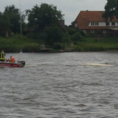 Zu einem gekenterten Boot auf der Elbe wurden die Feuerwehren aus Lauenburg, Burchhorst und Hohnstorf am Dienstagnachmittag alarmiert. Vermutlich brachte eine Windböe das kleine Segelboot zum kippen, der Bootsführer schwamm selbständig an das Niedersächsische Elbufer. Dabei musste er gegen die Strömung der Elbe ankämpfen. An Land angekommen informierte er die Rettungskräfte, sein Boot trieb währenddessen führerlos auf der Elbe. Mit zwei Rettungsbooten machten sich Kräfte der Lauenburger Wehr auf den Weg. Gleichzeitig fuhr die Feuerwehr Buchhorst mit ihrem LF16 und ELW in die Elbstraße um von dort aus an das Boot zu gelangen. Auch die Mitglieder der Hohnstorfer Wehr waren mit einem Mehrzweckboot ausgerückt, nahmen das havarierte Boot in Schlepp und brachten es an das Ufer. Der Bootsführer wurde währenddessen rettungsdienstlich versorgt. Kurze Zeit später rückten die Schleswig-Holsteiner Kräfte wieder ein.
