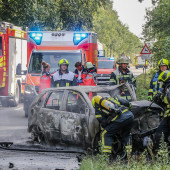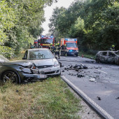 Zu einem schweren Verkehrsunfall rückten die Feuerwehren Buchhorst und Lauenburg auf die L200 aus. Auf der viel befahrenen Landstraße auf Höher der Abzweigung zum Kieswerk kam es zu einem Zusammenstoß zwischen drei Fahrzeugen. Ein VW Tiguan stieß frontal mit einem VW Polo zusammen, welcher nach dem Aufprall sofort in Flammen aufging. Der Fahrer eines weiteren Kleinwagens konnte nicht mehr rechtzeitig bremsen und fuhr in den verunfallten Tiguan. Er konnte sich aber selbst befreien. Unfallzeugen versuchten den Fahrer des Polo noch aus seinem brennenden PKW zu befreien. Jedoch gelang dies nicht. – Als das HLF am Unfallort eintraf, stand der PKW bereits in Vollbrand. Für den Fahrer kam jede Hilfe zu spät, er verbrannte in seinem Kleinwagen. Unter schwerem Atemschutz ging der Angriffstrupp gegen die Flammen vor. Löschte dabei auch die trockne Vegetation, auf welche das Feuer bereits übergegriffen hatte. Die vier weiteren Unfallbeteiligten waren bereits vor dem Eintreffen der Feuerwehr aus ihren PKW befreit und befanden sich in Rettungsdienstlicher Betreuung. Für die Maßnahmen musste die Einsatzstelle über mehrere Stunden voll gesperrt werden. Das Lauenburger TLF blieb bis zur Bergung an der Einsatzstelle, übergab die Einsatzstelle schließlich an die Polizei und rückte gegen 21 Uhr wieder zur Wache ein.