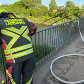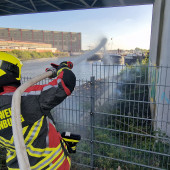 Am Samstagnachmittag rückte die Lauenburger Feuerwehr zu einem gemeldeten Böschungsbrand am Elbe-Lübeck Kanal aus. Unter der Brücke der Bundesstraße 209 kam es zu einem Feuer. Rauch stieg unter der Brücke auf, zur Erkundung gingen Wehrführer Heuer und der Fahrzeugführer des LF 20 vor. Anstatt lange Schlauchleitungen über das Gelände des Yachthafen zu legen, entschied man sich für den direkten Weg. Das LF 20 bezog Stellung auf der Kanalbrücke. Ein Trupp machte sich unterhalb der Brücke bereit, anschließend wurde eine Schlauchleitung abgelassen und gesichert. Mit dem Schnellangriff wurde das Feuer bekämpft. Nach einer Kontrolle mittels Wärmebildkamera konnte kurze Zeit später die Rückmeldung: "Feuer aus" gegeben werden.
