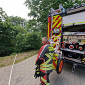 Am Montagnachmittag wurde die Feuerwehr zu einem Flächenbrand alarmiert. An der Albinus Gemeinschaftsschule kam es an einem Hang zu einem Feuer. Der Hausmeister hatte bereits versucht die Flammen einzudämmen, jedoch entzündete sich das Gestrüpp immer wieder neu. Die Besatzung des angerückten LF 20 leitete sofort die Brandbekämpfung mit dem Schnellangriff ein. Die Umgebung wurde mit Wasser benetzt um einen erneuten Brandausbruch zu verhindern. Die nachrückenden Kräfte von HLF und TLF brauchten nicht mehr eingreifen. Gemeinsam rückten alle Einsatzkräfte wieder ein.