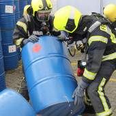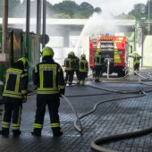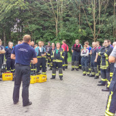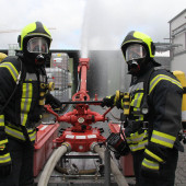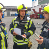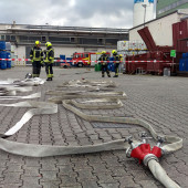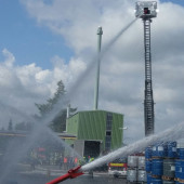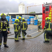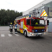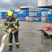 In einem Chemie verarbeitenden Betrieb kam es am Samstagmorgen zu einer Verpuffung in der Betriebsanlage. Dichter Rauch quoll aus den Lüftungsöffnungen des Objektes. Der diensthabende Schichtführer der Firma Worlee Chemie nahm Wehrführer und Einsatzleiter Heuer in Empfang. Verletzte sollte es nach ersten Angaben nicht geben. Nach einer ersten Lageerkundung, konnte Heuer die Kräfte gezielt einsetzen. Eine auslaufende Chemikalie im rückwärtigen Gebäudebereich konnte ausgemacht werden. Ein Angriffstrupp vom HLF ging unter Atemschutz vor, um die Stoffnummer an die angerückte Einheit vom LZG weiter zu geben. Frühzeitig entschied sich die Einsatzleitung dazu, die Feuerwehren aus Schnakenbek und Lanze nachzualarmieren. Der Gefahrenbereich um die Einsatzstelle wurde abgesperrt, sodass keine unbefugten Personen sowie ungeschützte Einsatzkräfte der Gefahr zu nah kamen. Während der Erkundung kam es zu einer weiteren Verpuffung, ein Chemiefass flog über das Gelände.Sofort kam über alle Funkgeräte die Aufforderung, sich zurück zu ziehen. Die in Stellung gebrachten Wasserwerfer der Drehleiter, sowie der mobile Werfer des TLF und ein B-Rohr löschten die Werkhalle ab. Die Feuerwehr Schnakenbek speiste eine stationäre Löscheinrichtung ein, um ein im Gefahrenbereich befindliches Lager zu schützen. Kräfte des Löschzug Gefahrgut unterstützten Heuer bei der Einsatzleitung. Die Fachberater der Sonderkomponente stehen der Wehrführung bei solchen Lagen zur Seite, bringen Spezialequipment wie Schutzanzüge und Pumpen mit. Einige Augenblicke später konnte Entwarnung gegeben werden, „Übungsende“ ließ Wehrführer Heuer verkünden. Der stellvertretende Wehrführer hatte die Alarmübung geplant, welche einmal jährlich vorgeschrieben ist. Auch der zuständige Sachbereichsleiter für den Katastrophenschutz vom Kreis Herzogtum Lauenburg war vor Ort. Er beurteilte die Lage und konnte zufrieden auf die Arbeit der Freiwilligen blicken. In einer Nachbesprechung wurden Probleme wie zugewachsene Hydranten angesprochen. Insgesamt konnte der Übungsleiter Dennis Lühr gemeinsam mit Vertretern der Firma Worlee Chemie jedoch ein positives Resümee ziehen.