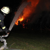 Am morgen des 22. August gegen kurz nach zwei Uhr wurde die Feuerwehr Lauenburg mit wasserführenden Fahrzeugen zur Unterstützung nach Krüzen alarmiert. Vor Ort brannten ca. 100 Rundballen auf einem Feld an der B209. Da für die Wasserversorgung einige hundert Meter B-Schläuche verlegt werden mussten, wurde das TLF der FF Lauenburg erstmal zur Wassereinspeisung an der Einsatzstelle eingesetzt. Nachdem die Wasserversorgung dann stand, ünterstützten wir bei der Ausleuchtung der Brandstelle. Um alle Flammen vollständig löschen zu können, mussten die stark gepressten Rundballen mit Hilfe von Treckern auseinander gezogen werden. Diese verteilten das Stroh an zwei eingerichteten Ablöschstellen, an denen dann Einsatzkräfte unter Atemschutz mit Strahlrohren zum abschlöschen der Flammen bereit standen. Auch hier war das Tanklöschfahrzeug zeitweise mit einem C-Rohr mit im Einsatz. Insgesammt stellte die Feuerwehr Lauenburg drei Atemschutztrupps.
