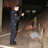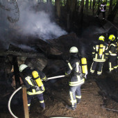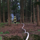 Vollalarm für die Feuerwehr Lauenburg. In Schnakenbek brannte in einem Wald ein 10x3m großer Schießstand in voller Ausdehung. Im ersten Alarm waren die Feuerwehr Schnakenbek und Krüzen zur Einsatzstelle ausgerückt. Nach Erkundung des Fahrzeugführers der Feuerwehr Schnakenbek wurde die Feuerwehr Lauenburg mit wasserführenden Fahrzeugen nachalarmiert, da es am Einsatzort keine Wasserentnahmestelle gab. An der ersten Zufahrt zum Schießstand wurde dann ein Pendelverkehr zur Wasserversorgung eingerichtet. Über einen anderen schon relativ bewachsenen Weg fuhr unser Tanklöschfahrzeug die Einsatzstelle auf der Rückseite an und unterstützte zusätzlich mit einem C-Rohr bei der Brandbekämpfung. Da sich der Einsatz einige Stunden hin zog, mussten später noch Flutlichtstrahler in Stellung gebracht werden.