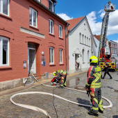 Am Donnerstagnachmittag rückte die Lauenburger Feuerwehr zu einem gemeldeten Zimmerbrand in die Lauenburger Altstadt aus. Anwohner bemerkten das schrille piepen von mehreren Rauchwarnmeldern und Brandgeruch im Dachgeschoss. Sofort kontaktierten sie den Feuerwehr Notruf unter 112 und alarmierten die Feuerwehr. Schnell machte sich der Löschzug von der Feuerwache in der Reeperbahn auf den Weg. Während der Einsatzfahrt rüstete sich der Angriffstrupp mit Atemschutzgeräten aus um am Einsatzort sofort in die verrauchte Wohnung vorgehen zu können. Am Einsatzort ging alles blitzschnell, der Verteiler wurde vor dem Gebäude in Stellung gebracht, das Schlauchpaket wurde vorbereitet. Im Dachgeschoss des Altbaus wurde schließlich ein Rauchvorhang im Eingang zur Wohnung angebracht um eine Ausbreitung zu verhindern. Nachdem die Tür geöffnet war, ging der Trupp in die verrauchte Wohnung vor. Beim absuchen der Wohnung entdeckten der Trupp eine Person, die bis dahin nichts von der drohenden Gefahr mitbekommen hatte. Schnell wurde die Person aus der Wohnung gerettet und dem Rettungsdienst zugeführt. Die Ursache für die Verrauchung wurde in der Küche gefunden. Schließlich wurde das Gebäude belüftet und die Einsatzstelle wie üblich an die Polizei übergeben. Die Feuerwehr rückte wieder ein.