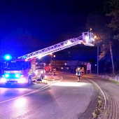Unter dem Stichwort Feuer Mittel wurde die Feuerwehr Lauenburg in der Nacht zu Sonntag in die Hafenstraße alarmiert. Anwohner bemerkten einen starken Brandgeruch. Beim Eintreffen des mitalarmierten Rettungswagens war eine deutliche Verqualmung über der Straße festzustellen. Bis zum Eintreffen des KdoW verzog sich diese jedoch weitestgehend. Dennoch wurde gründlich nach der Ursache gesucht. Ein nahe gelegenes Waldstück wurde mit Handlampen begangen, mit der Wärmebildkamera ein Gebäude kontrolliert. Schließlich konnte Entwarnung gegeben werden, von der Drehleiter aus wurde ein Feuerkorb auf einer Terasse entdeckt. Kurze Zeit später konnten die Kräfte wieder abrücken.