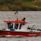 Am Freitagnachmittag alarmierte die Feuerwehr Geestacht die Lauenburger Wehr mit dem Mehrzweckboot Elbe 1 nach. Ursache war eine auf Grund gelaufene Barkasse vor dem Anleger in Grünhof-Tesperhude. Die Rettungsboote der Ortsansässigen Wehr konnte das schwere Boot nicht vom Hindernis im niedrigen Fahrwasser schleppen. Von Lauenburg aus machte sich eine Besatzung mit dem MZB sowie dem Rettungsboot auf den Weg nach Geesthacht. Mit einer Schleppleine wurde das havarierte Schiff mit dem Lauenburger Feuerwehr Boot verbunden. Das PS stärkere Arbeitsgerät schaffte es dann die alte Barkasse ins tiefere Wasser zu ziehen. – Aktuell sorgt die anhaltende Trockenheit für einen Niedrigstand der Elbe. Möglicherweise führte das zum auflaufen der Barkasse auf dem Hindernis unter Wasser.