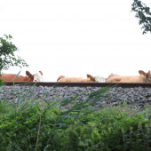 Ein tierischer Einsatz forderte die Lauenburger Feuerwehr am Samstagnachmittag. Ersten Angaben zufolge sollten Rinder ausgebüchst und schließlich in den Elbe-Lübeck Kanal gestürzt sein. Sofort machten sich die Einsatzkräfte auf den Weg. Das HLF fuhr zunächst die angenommene Einsatzstelle an, währenddessen rückte eine Besatzung zu dem fest im Wasser stationierten Boot aus. Zeitgleich machte sich auch eine Besatzung mit dem Unimog und dem Rettungsboot auf den Weg zum Kanal. Zunächst war jedoch unklar, wo genau die Tiere abgestürzt sein sollten. Schließlich wurde der Landwirt ausfindig gemacht, der bereits mit mehrere Helfern versuchte die Herde einzufangen. Doch ergebnislos. Mittlerweile stellten die Tiere eine Gefahr für die Sicherheit dar, denn wenig später traf man einige der Tiere auf den Bahngleisen an. Hier verkehrt die Regionalbahn zwischen Lüneburg und Kiel. Die Einsatzleitung veranlasste eine Streckensperrung. Doch aufhalten ließen sich die Tiere nicht, im Gegenteil, sie machten sich auf den Weg in Richtung Lanze, mal schneller, mal langsamer. Die Feuerwehr immer dicht auf den Versen doch nie so nah um sie in eine gezielte Richtung zu treiben. Während die Drohnengruppe der Technischen Einsatzleitung angefordert wurde, konnte die wasserseitige Suche eingestellt werden. Es befand sich offensichtlich keine Kuh mehr im Wasser. Sportbootkapitäne hatten berichtet das 2 Tiere selbständig aus dem Wasser gekommen sein sollen, wohin diese anschließend geflüchtet waren, sei aber unbekannt. Schließlich erreichten die Tiere das Gemeinde gebiet von Lanze, die Besatzung von HLF und LF 20 hatten auf den gesperrten Bahngleisen Stellung genommen um die Tiere zumindest von diesen Fern zu halten, mit Erfolg! Drei der insgesamt 5 ausgebrochenen Tiere setzten ihren Weg in einem Maisfeld fort. Die Landwirte blieben den Tieren auf der Spur, während die Drohnengruppe die Bahngleise kontrollierte. Die Gefahr war gebannt und die Feuerwehr konnte nach über 2 Stunden den Einsatz beenden.