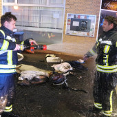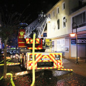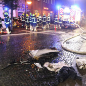 Zu einem gemeldeten Wohnungsbrand in der Lauenburger Innenstadt wurde die Feuerwehr am späten Donnerstagabend alarmiert. Flammen schlugen aus einem Fenster, als Beamte der nahegelegenen Polizeiwache zur Hilfe eilten. Geistesgegenwärtig evakuierten sie Bewohner des Hauses. Wenig später trafen Einsatzleiter Lars Heuer sowie die ersten Großfahrzeuge ein. Der Angriffstrupp ging sofort unter Atemschutz mit dem Schlauchpaket in die Brandwohnung vor. Zuvor wurden alle Personen aus dem Gebäude, darunter auch der Bewohner der Brandwohnung gerettet. Mit gezieltem Einsatz von Löschwasser wurde das Feuer schnell unter Kontrolle gebracht. Abgelöschte Möbelstücke wurde aus dem Fenster geworfen um ein erneutes Aufflammen auszuschließen. Parallel versorgte der eingetroffene Rettungsdienst einen Patienten und betreute insgesamt 10 Bewohner. Um Glutnester abzulöschen mussten teile der Wand- und Deckenverkleidung entfernt werden. Mit einem Druckbelüfter wurde Rauch aus dem Gebäude getrieben. Dennoch ist das Gebäude zunächst nicht bewohnbar. Die Bewohner wurden durch das Ordnungsamt in Unterkünfte gebracht. Die Einsatzkräfte spülten noch an der Einsatzstelle Anhaftungen des Brandrauch von ihrer Schutzkleidung mit Wasser ab. Anschließend wurde die verschmutzte Kleidung in Säcken sicher für die Reinigung verpackt. In Jogginganzügen die auf den Löschfahrzeugen mitgeführt werden fuhren die kontaminierten Einsatzkräfte zurück zur Wache um dem "Feuerkrebs" vorzubeugen.