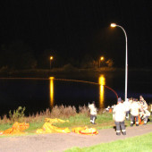 Am späten Mittwochabend wurde gegen 23Uhr die Feuerwehr Lauenburg mit ihrer Ölwehreinheit zur Unterstützung nach Geesthacht alarmiert. Dort wurde unterhalb des Schleusenkanals auf einer Gewässeroberfläche von ca. 12000m² eine Ölverschmutzung festgestellt. Mit dem Gerätewagen-Ölwehr, sowie zwei Booten machten sich die Lauenburger Feuerwehrkräfte auf den Weg zur Einsatzstelle. Gemeinsam mit der Feuerwehr Geesthacht wurde dann mit ihrem Boot und einem Lauenburger Boot eine Ölsperre quer über die Elbe gezogen und befestigt, sodass sich die Verschmutzung nicht weiter ausbreiten konnte. Daraufhin wurde das THW aus Ratzeburg alarmiert, die einen Ölskimmer für größere Gewässer haben, mit dem sie die Ölverschmutzung aufnehmen sollten.