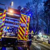 Am Freitagabend ereignete sich auf der Bundesstraße 5 zwischen Schnakenbek und Lauenburg ein Verkehrsunfall zwischen 2 Fahrzeugen. Ersten Angaben zufolge sollte mindestens eine Person eingeklemmt sein. Die Leitstelle Süd alarmierte die Feuerwehren aus Schnakenbek und Lauenburg, sowie die Feuerwehr Krüzen. Kurz nach dem Alarm rückte das HLF gefolgt von TLF, LF 20 und ELW zur Einsatzstelle aus. Wenig später traf der Rüstzug an der Einsatzstelle ein. Sofort begannen die ersten Maßnahmen. Fahrzeugführer Christian Blöss starte die Erkundung am Unfallfahrzeug. Dieses lag auf der Seite in einem Straßengraben. Parallel wurde die Ablagefläche aufgebaut. Eine Person war im Fahrzeug eingeschlossen . Der PKW wurde wieder auf die Reifen gestellt, dabei hat der innere Retter den Patienten betreut. – Während der Maßnahmen traf auch die Schnakenbeker Feuerwehr ein und unterstützte die Maßnahmen. Mit dem Akku-Spreizer wurde die Fahrertür entfernt und so eine Rettungsöffnung geschaffen. Wenig später konnte die Person gemeinsam mit dem Rettungsdienst befreit werden. Die Einsatzstelle wurde geräumt und schließlich an die Polizei übergeben.