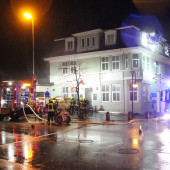 Die weitere Lageerkundung ergab dann, dass sich das Feuer im angrenzenden Nachbargebäude, dem ehemaligem "Oxxo", befand. Durch Lüftungsschächte drang somit der Qualm in den ehemaligen Posthof, wodurch dieser nur stark verraucht war. Hier wurde ein Angriffstrupp der Boizenburger Wehr zur Bekämpfung des Feuers eingesetzt. Gleichzeitig wurde die zweite Drehleiter mit Wenderohr in Stellung gebracht, um das Dach zu kontrollieren und eventuell durchdringende Flammen zu löschen.