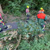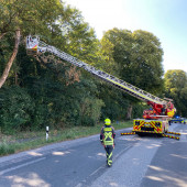 Am Samstagnachmittag rückte die Drehleiter gemeinsam mit dem HLF auf die Bundesstraße 5 in Richtung Schnakenbek aus. Autofahrern war ein abgebrochener Ast aufgefallen der bedrohlich über dem Radweg hing. Die Feuerwehr rückte an und brachte die Drehleiter in Stellung. Der Sägeführer ging mit der Elektrosäge in den Korb und beseitigte die Gefahrenstelle. Anschließend wurde der Radweg geräumt und die Straße wieder freigegeben.