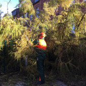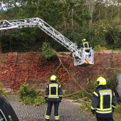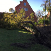 Zu weiteren Unwetter bedingten Einsätzen rückte das HLF am Sonntagmorgen aus. Die Feuerwehr und Rettungsleitstelle Süd meldete umgestürzte Bäume im Stadtgebiet. Zunächst ging es für die Besatzung in die Straße Weingarten. Hier versperrte eine riesige umgestürzte Tanne die Durchfahrt zum Schulhof. Noch während die Kräfte hier beschäftigt waren, fuhr der KdoW zur nächsten Einsatzstelle. Auch im Fürstengarten versperrten umgestürzte Bäume die Durchfahrt. Schließlich ging es gemeinsam mit der Drehleiter in die Elbstraße. Auf dem Parkplatz Borkeplatz war ein Baum vom Hang hinabgestürzt und begrub parkende Autos unter sich. Die Besatzungen von HLF und Drehleiter konnten die großen Äste der Eiche beseitigen und die Besitzer der Autos den Schaden begutachten. Noch immer hält der Wind über Norddeutschland an. Achten Sie bitte auf umherfliegende Teile, meiden Sie den Aufenthalt im bewaldeten Gebiet!