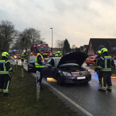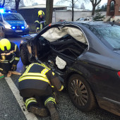 Unter dem Stichwort "Verkehrsunfall, Person klemmt" wurden heute Nachmittag sämtliche Rettungskräfte von Feuerwehr, Rettungsdienst und Polizei auf die B209 gerufen. Dort kam es in Lauenburg in einem Kreuzungsbereich aus noch ungeklärter Ursache zu einem Unfall mit drei Verletzten. Ein Pkw wurde dabei so sehr an der Fahrerseite getroffen, sodass sich die Fahrertür nicht mehr öffnen lies. Nach Versorgung der Patienten durch den Rettungsdienst, beschloss dieser, dass die Fahrerin so rückenschonend wie möglich gerettet werden sollte. Hierzu nahm die Feuerwehr Lauenburg mit Hilfe vom Spreizer die Fahrer- und hintere Tür raus und trennte mit der hydraulischen Schere die B-Säule durch. Nach gut einer dreiviertel Stunde konnte somit die Patientin mit einem Rettungsbrett aus dem Fahrzeug gerettet werden. Die anderen Beteiligten konnten selbstständig die verunfallten Pkws verlassen.