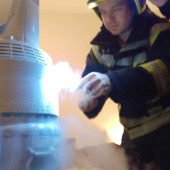 Ein defektes Sauerstoffgerät löste in der Nacht zu Freitag einen Großeinsatz für Rettungskräfte in Lauenburg aus. Zischend strömte flüssiger Sauerstoff aus einem Heimgerät, der Bewohner informierte daraufhin die Rettungsleitstelle. Unter dem Stichwort „Gefahrguteinsatz – Sauerstoffanlage undicht“ wurde neben der Feuerwehr Lauenburg auch der Löschzug Gefahrgut alarmiert. Binnen kürzester Zeit waren die Lauenburger Kräfte vor Ort. Darunter auch ein Messtrupp mit dem Erkundungsfahrzeug. Der Rettungsdienst hatte bereits die betroffene Person in Sicherheit gebracht und betreut. Gemeinsam mit dem Zugführer des LZG, Björn Koberstein erkundete Wehrführer Heuer die Einsatzstelle. Schnell konnte Entwarnung gegeben werden. Der anrückende Löschzug Gefahrgut konnte Abspann, das heißt die Kräfte werden vor Ort nicht mehr benötigt. Mit Handwerkzeug wurde der Haupthahn des Gerätes abgesperrt. Kurze Zeit später konnte die Einsatzstelle wieder frei gegeben werden.