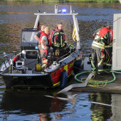 Am Freitagnachmittag kam es zu einem Großeinsatz auf der Elbe. Ersten Angaben zufolge drohte ein Boot in der Einfahrt zum Elbe-Lübeck Kanal unterzugehen. Sofort machte sich die Feuerwehr mit Großfahrzeugen und zwei Booten auf den Weg zur Einsatzstelle. An Land bereitete die Besatzung des LF 20 die Chiemsee Pumpen vor. Die Besatzung des MZB Elbe 1 ging zur Erkundung auf das schwimmende Restaurant "Unsinkbar" vor. Ein Arbeitsschiff hatte den Ponton bereits gesichert und mehrere Tauchpumpen in Stellung gebracht. Durch die Außenwand lief jedoch unentwegt Wasser nach. Durch Anbauten konnte das Leck nicht abgedichtet werden. Das MZB 20-78-03 nahm am Ufer eine Stromleitung vom LF und mehrere Pumpen entgegen und setzte schließlich zum Havaristen über. Dort brachten die Einsatzkräfte die Pumpen zum Einsatz. Über 2 B-Leitungen wurden rund 2.000 l/min aus dem Rumpf befördert. Im Verlauf des Einsatzes wurde noch eine 3. Schmutzwasserpumpe eingesetzt. Mit dieser Schlagkraft konnte schließlich mehr Wasser aus dem Ponton gefördert werden, als nachlief. Nach rund 2 Stunden lief kein Wasser mehr nach. Das Schubschiff konnte mit Hilfe des MZB Elbe 1 den Havaristen auf ein Trockendock der Hitzler Werft bugsieren. Nach über 3 Stunden war der Einsatz für die Feuerwehr beendet.