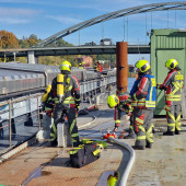 Am Samstagnachmittag alarmierte die Feuerwehr- und Rettungsleitstelle Süd die Lauenburger Feuerwehr in die Bahnhofstraße. Auf einem Binnenschiff war es bei Arbeiten zu einem Feuer gekommen. Ersten Angaben zufolge sollte der Maschinenraum in voller Ausdehnung brennen. Auf Anfahrt informierte die Leitstelle Einsatzleiter Lars Heuer über den aktuellen Stand. Aufgrund der angenommenen Lage forderte er sofort die Wehren aus Buchhorst und Schnakenbek nach. Auf Anfahrt rüsteten sich bereits Atemschutzträger auf dem LF 20 und HLF aus, um am Einsatzort sofort einsetzbar zu sein. Einsatzleiter Heuer ging an der Einsatzstelle sofort zur Erkundung vor. Arbeiter erklärten was passiert war. Aus bislang ungeklärter Ursache war unter Deck in einem Lagerraum ein Feuer ausgebrochen, der Angriffstrupp vom LF 20 ging sofort vor. Eine Schlauchleitung wurde auf ein Ponton verlegt von wo aus der weitere Angriff vorgenommen wurde. Verletzt wurde niemand. Schnell konnten die Flammen abgelöscht, und das Brandgut aus der Luke befördert werden. Das Großaufgebot von Einsatzkräfte stand in der Bahnhofstraße in Bereitstellung. Schließlich gab Einsatzleiter Heuer Entwarnung, die Kräfte der Lauenburger Wehr reichten aus. Dennoch zeigt sich, auf die Zusammenarbeit zwischen den Wehren ist Verlass.