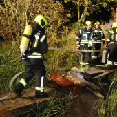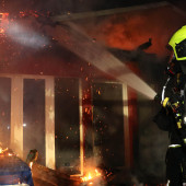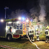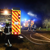 In der Nacht zu Sonntag wurde die Lauenburger Feuerwehr in das Industriegebiet alarmiert. Ersten Angaben zufolge brannte der Dachstuhl eines Einfamilienhauses in voller Ausdehnung. Bereits auf Anfahrt ließ Wehrführer Lars Heuer die Gemeindewehren Schnakenbek und Buchhorst nachalarmieren um schnell viele Atemschutzgeräteträger in Bereitstellung zu haben. Bei der ersten Erkundung wurde deutlich: Die Dachkonstruktion sowie Teile der Fassade brannten bereits in voller Ausdehnung. Das Objekt war jedoch nicht über befestigte Wege erreichbar und musste über eine Wiese angefahren werden. Einsatzleiter Heuer entschied deshalb auch die Feuerwehr Lanze zu alarmieren. Als das HLF eintraf, begann der Angriffstrupp sofort mit der Brandbekämpfung über ein C-Rohr. Wenig später traf das TLF ein und löschte über ein weiteres C-Rohr den rückwärtigen Bereich ab. Rechtzeitig standen weitere Atemschutztrupps der Nachbarwehren bereit. Sodass die Trupps nacheinander abgelöst werden konnten. Ein Trupp aus Lanze übernahm die Löscharbeiten in der Dachkonstruktion, ein weiterer Angriffstrupp aus Schnakenbek entfernte mit einem Trennschleifer das Trapezblech um alle Glutnester zu erreichen. Die Löscharbeiten dauerten bis in den frühen Morgen an. Während der Löscharbeiten stand zudem ein Rettungswagen zur Absicherung der Einsatzkräfte bereit.