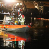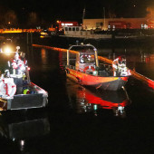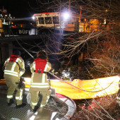 Zu einer Gewässerverunreinigung wurde die Lauenburger Feuerwehr am Mittwochabend in die Nachbarstadt Geesthacht alarmiert. Dort war die örtliche Feuerwehr bereits mit der Erkundung beschäftigt. Im Hafenbecken sollten ersten Angaben zufolge über 1000l Diesel-Kraftstoff ausgetreten sein. Als zuständige Feuerwehr mit einer Ölwehr, sind die Lauenburger mit Gerät und Utensilien zur Schadenseindämmung ausgestattet. Mit Drei Gerätewagen und Manpower machten sich die Kräfte auf den Weg. Im Hafenbecken war bereits das Boot der Feuerwehr Geesthacht im Einsatz. Gemeinsam wurden die schwimmenden Barrieren ausgebracht und eine weitere Ausbreitung verhindert. Der Einsatz dauerte bis spät in die Nacht an.