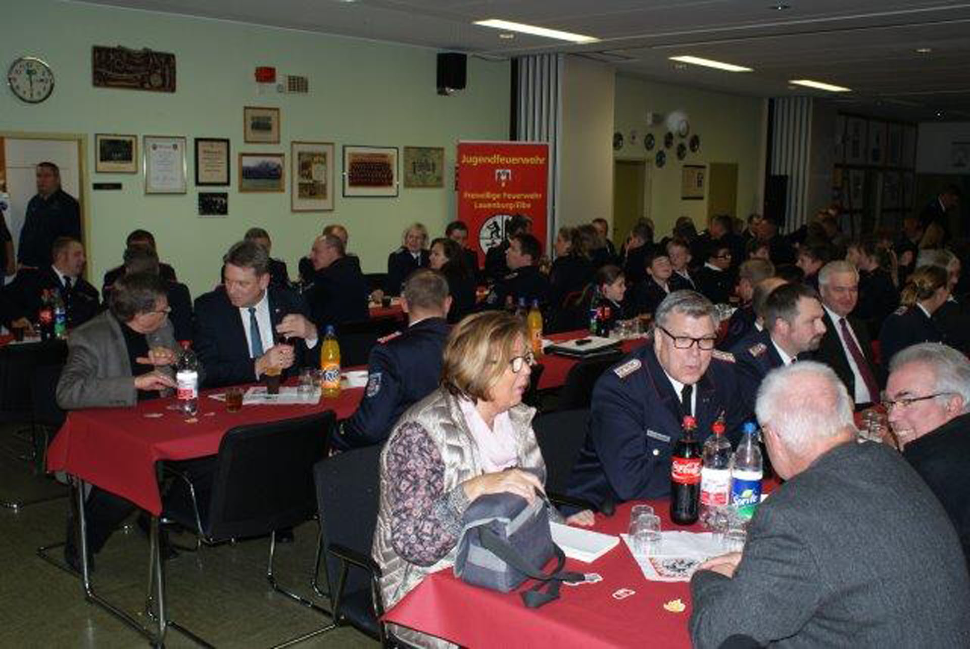 Zahlreiche Gäste aus Politik, Kreisfeuerwehrverband, befreundeten Jugendfeuerwehren, Gründungsmitgliedern , Vorstand der Aktiven, der damalige Jugendwart der ersten Stunde und weitere Gäste feierten am 04.11.16 den 30igsten Geburtstag der Jugendfeuerwehr Lauenburg. Nachdem der Wehrführer Lars Heuer die Gäste begrüßt hatte, erklärte er, ohne Jugendfeuerwehr hätten wir große Probleme mit dem Nachwuchs. Fast die Hälfte der Aktiven kommt aus der Jugendfeuerwehr. Fünf Gründungsmitglieder sind auch heute noch dabei: Torben Heuer, Michael Wendland, Björn Koberstein, Stefan Basedow, Sven Klempau. Es gibt wohl kaum eine sinnvollere Freizeitbeschäftigung. Sein Dank ging an die Jugendlichen für ihren Einsatz, aber auch an die Ausbilder die neben dem aktiven Dienst jeden Freitag die Jugendlichen ausbilden. Anschließend überbrachten die zahlreichen Gäste die besten Glückwünsche. Bürgervorsteher Bernd Dittmer erinnerte daran, dass man vor 30ig Jahren die Gründung der Jugendfeuerwehr eher skeptisch sah, man konnte keine Notwendigkeit erkennen, er ließ sich dann aber doch überzeugen. Kreisjugendwart Stefan Jacke lobte besonders die Ausbilder. Jugendwarte haben mehr zu tun als die Wehrführer, sagte er. So sind die Ausbilder auch für die kleinen und größeren Probleme, die im Jugendalter auftreten, oftmals die Ansprechpartner und auf Freizeitfahrten muss man als Elternersatz fungieren. Bevor der Jugendgruppenleiter Leon Stegen in einer Präsentation den Gästen Fotos aus den vergangenen 30ig Jahren zeigte, erklärte Jugendwartin Gabriela Fischer den Gästen, wie der Dienst über das Jahr aussieht. Zum Schluss bedankte sie sich bei den Ausbildern für die hervorragende Zusammenarbeit Arbeit, sowie bei den kleinen und großen Sponsoren und allen Helfern.Bevor es dann zum gemütlichen Teil ging, ließen alle geladenen Jugendgruppenleiter einen Luftballon mit einer Karte versehen, Richtung Himmel steigen. Wer so eine Karte findet, an uns zurück senden. Es wartet ein kleiner Grisu! Das Maskottchen der Jugendfeuerwehr!
