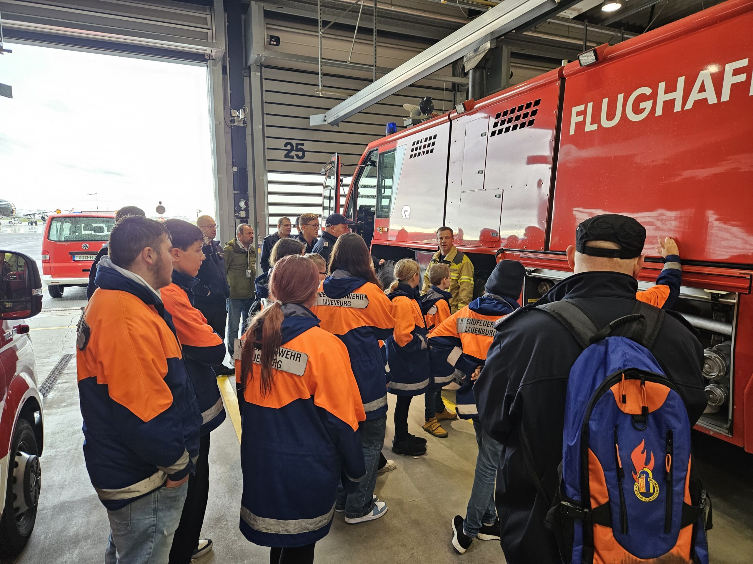 Anschließend durften wir uns die Werkfeuerwehrwache genauer anzuschauen. Dort wurden wir herzlich von dem Werkfeuerwehrmann Matthias empfangen. Auch dieser hat uns einige spannende Fakten über die Werkfeuerwehr und den Beruf als Feuerwehrmann an einem Flughafen erzählt. Des Weiteren durften wir uns die speziellen Fahrzeuge der Feuerwehr, unter anderem ein Panther, der über sehr viel Wasser verfügt und sehr hilfreich zur Brandbekämpfung eines Flugzeuges ist, noch einmal genauer ansehen.