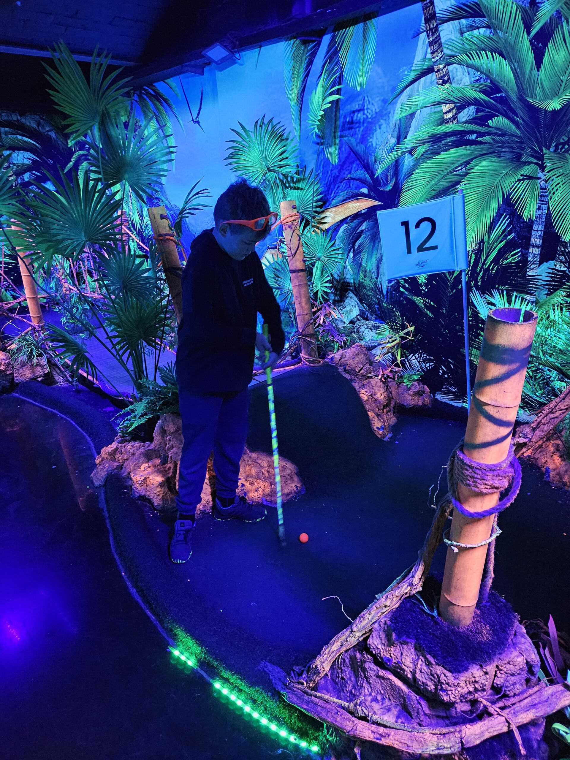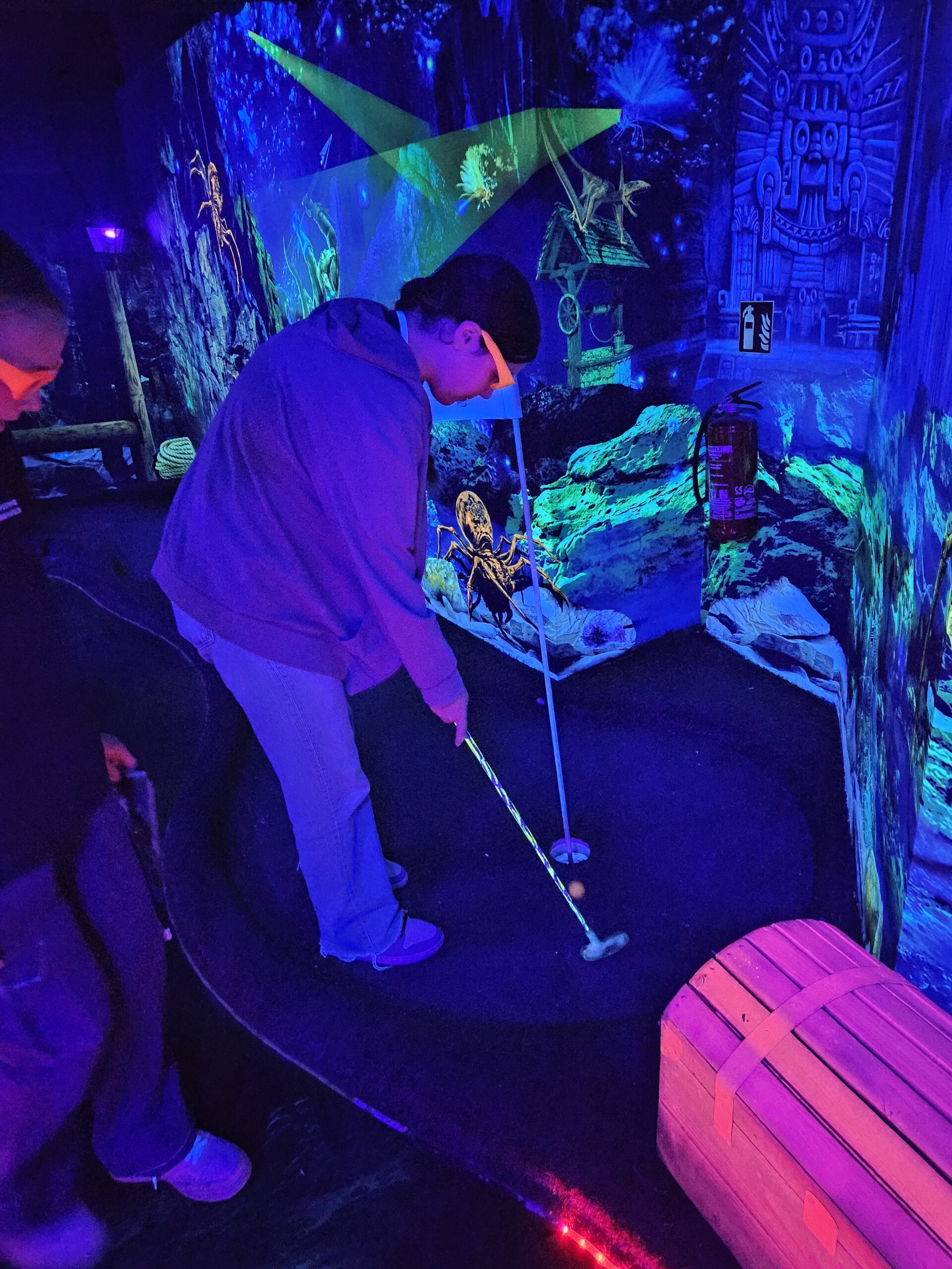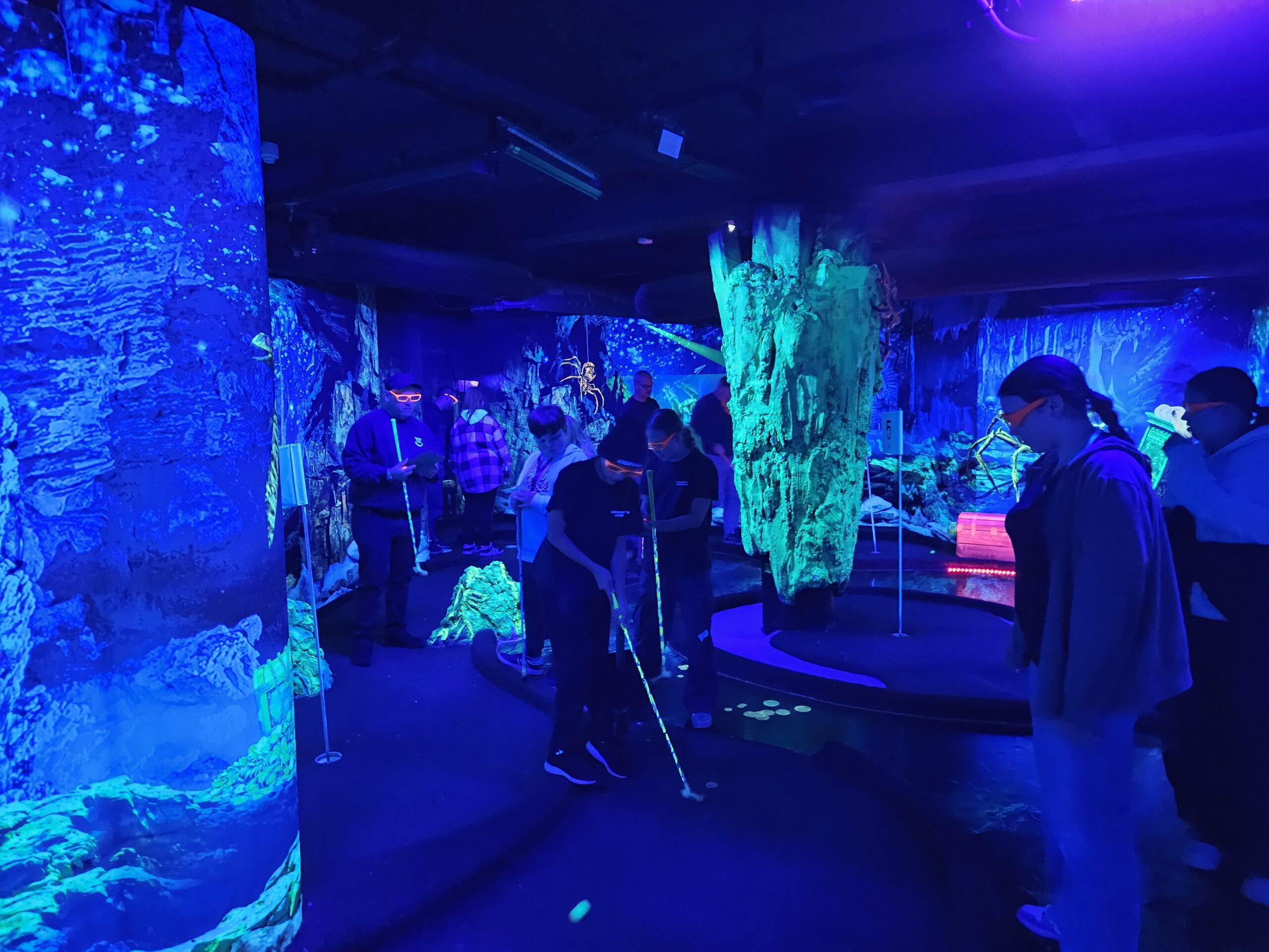 Bevor es am Sonntag zurück Richtung Heimat ging, sind wir noch im LilaLicht Minigolfen gewesen. Dort haben wir 3D-Brillen bekommen und konnten in die Unterwasserwelt eintauchen und beim Minigolfen kleine Rätsel lösen, um am Ende das Tor zum Ziel öffnen zu können.