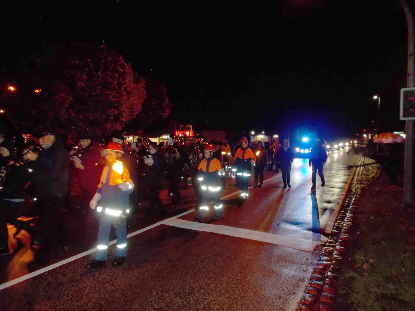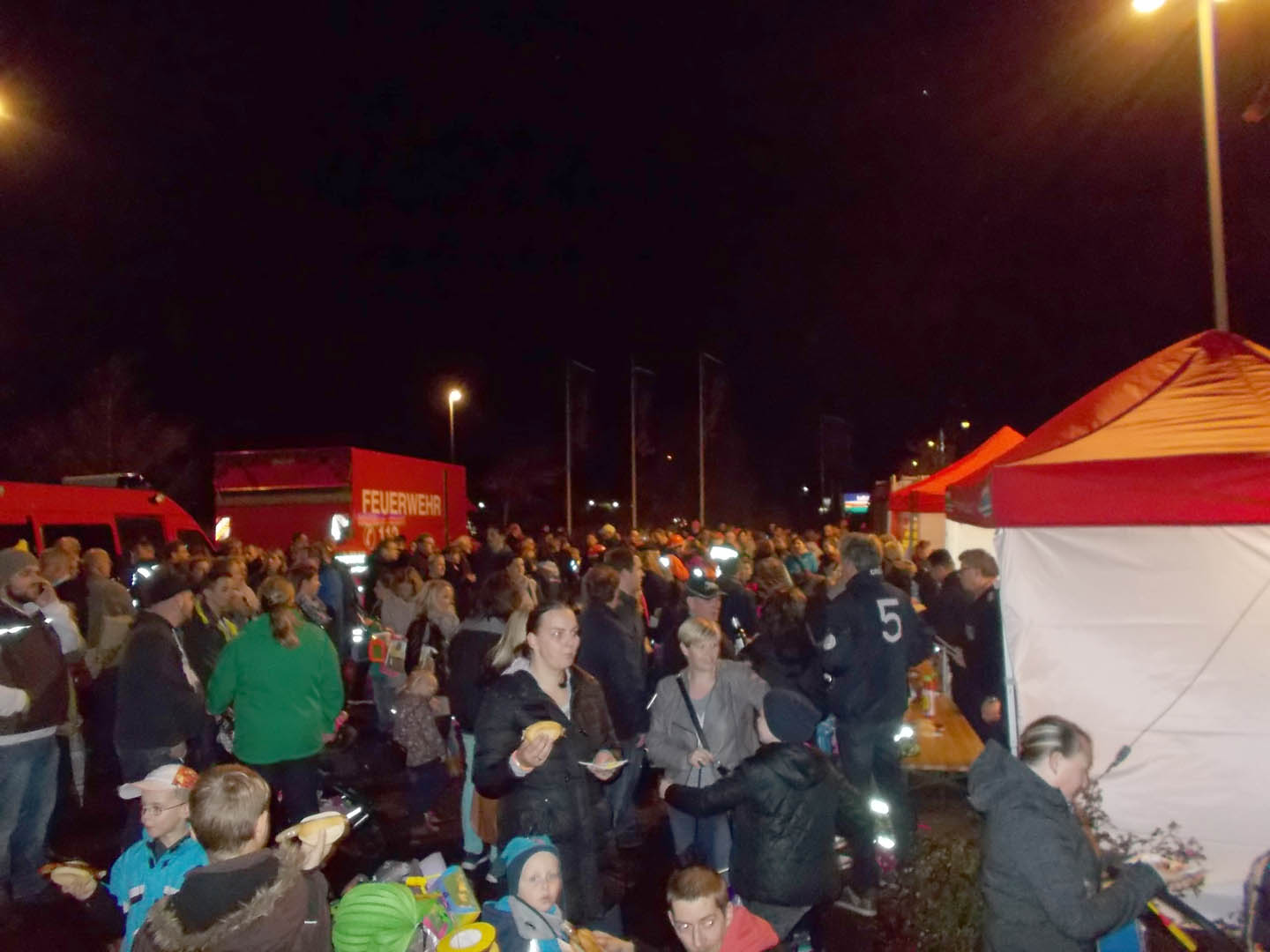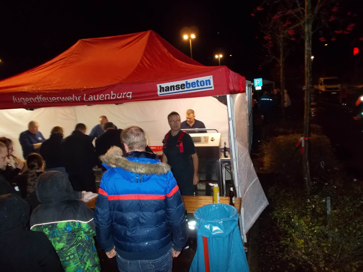 Trotz aufkommenden Regens ließen sich Samstagabend rund 500 Besucher des Lauenburger Laternenumzuges nicht davon abhalten einen Schritt vor die Tür zu setzen. Gegen 18:30 Uhr entfachte die Jugendfeuerwehr Ihre Fackeln, sie leuchteten den Musikanten vom Musikzug Lauenburg Süd der mit Blasmusik und Paukenschlag bekannte Lieder anstimmte. Unter Begleitung der Polizei ging es über den Triftweg auf die Reeperbahn, am Askanierhaus warteten bereits einige Bewohner des Pflegeheimes vor der Tür auf den Umzug. Der Musikzug widmete Ihnen zwei Lieder, darunter auch das bekannte „Ich gehe mit meiner Laterne…“ das für freudige Gesichter und großen Applaus bei den Bewohnern sorgte. Weiter ging es dann in den Röhrenkamp der uns schließlich auf die Zielgerade, die Juliusburger Landstraße und schließlich zu Famila geleitete. Dort wurden bereits am Nachmittag eine Grill- und Getränkestation aufgebaut. Die Massen versorgten sich mit Essen und warteten gespannt auf das große Feuerwerk. Unterstützt haben uns beim Verkauf, Mitglieder der Aktiven Wehr. Gegen 20 Uhr war es dann soweit! Ein lauter Knall und viele bunte Farben strahlten vom Himmel. Das Feuerwerk begann und beeindruckte mehrere Minuten die Besucher. Gold- und Silberregen, rote und blaue Explosionen am Himmel ließen auch über einige Regentropfen hinweg sehen. Wir danken allen kleinen und großen Besuchern für ihr Erscheinen und freuen uns schon jetzt auf das nächste Jahr.