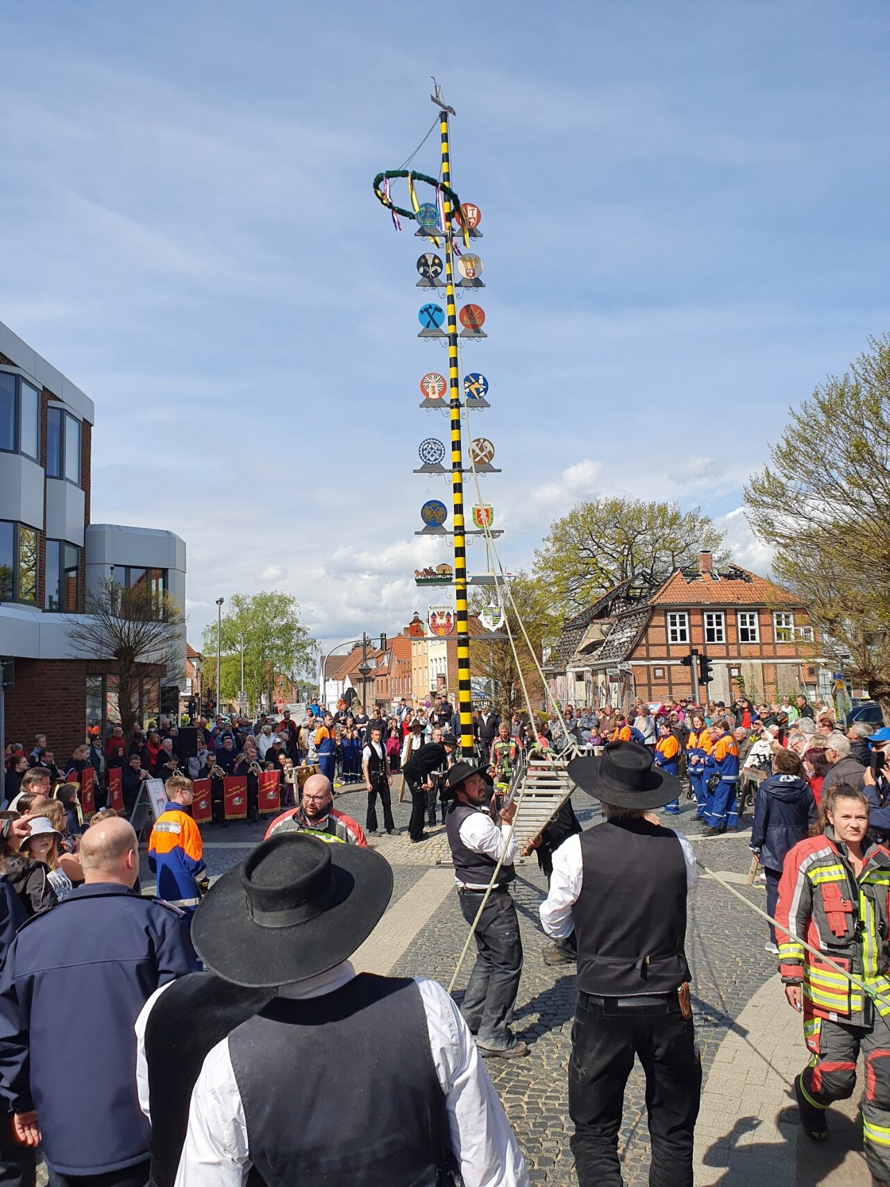 Auch in diesem Jahr wurde traditionell am 01. Mai der Maibaum in Lauenburg aufgestellt. So wie die Aktiven unserer Wehr, haben auch wir als Jugendfeuerwehr die Zimmermänner tatkräftig unterstützt, damit die Aufstellung des Maibaumes ohne Probleme klappen konnte. Im Spalier ist die Jugendfeuerwehr zusammen mit den Minirettern vorweg gegangen um einen Weg durch die Menschenmenge zu bahnen. So konnte der Maibaum, getragen von den Zimmermännern und einigen der aktiven Wehr, ohne Probleme an den Anschlagplatz gebracht werden. Während der Maibaum zum finalen Aufstellen vorbereitet wurde, hat die Jugendfeuerwehr den Platz des Geschehens weiträumig abgesperrt, damit kein Besucher des Geschehens zu Schaden kommt. Ohne Probleme konnte der Maibaum aufgestellt werden. Anschließend wurde sich gemeinsam mit den Besuchern mit Speisen und Getränken gestärkt. Wir hatten alle sehr viel Spaß und haben uns sehr gefreut, dass wir bei diesem Event dabei sein durften.