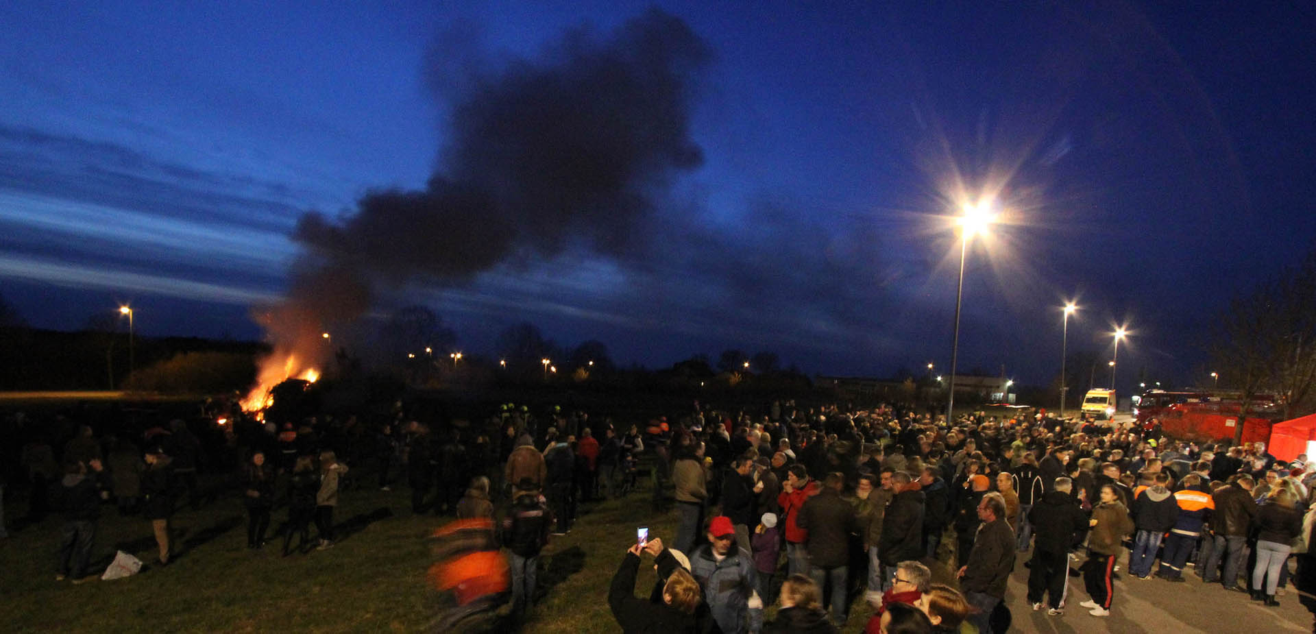 Traditionell veranstalte die Jugendfeuerwehr das Osterfeuer auch im Jahr 2016. Bereits seit den Morgenstunden bereiteten die Jugendlichen das Fest vor. Bürger lieferten mit Autos, Anhängern, Schubkarren und sogar Traktoren Grünschnitt aus den Gärten an. Mit Hilfe eines Frontladers wurde der Haufen für das Feuer meterhoch aufgetürmt. Am Nachmittag gingen dann die Vorbereitungen in die heiße Phase. Zelte für den Wurst- und Getränkeverkauf wurden aufgebaut. Die Stromversorgung hergestellt. Gegen 19 Uhr pilgerten dann hunderte Besucher zu der Wiese bei Famila. Bei bestem Wetter ging langsam die Sonne über der Feldmark unter und die Jugendlichen entzündeten das Osterfeuer mit Fackeln. In Reih und Glied marschierten die Kinder los, verteilten sich um den Berg aus Gestrüpp und Ästen und entfachten das Feuer. Bei wohliger Wärme ließen sich die Besucher die Wurst vom Grill, serviert vom Wehrführer persönlich schmecken. Bis spät in die Abendstunden freuten wir uns über reges Treiben rund um das Feuer. Wir freuen uns auf das nächste Jahr und wünschen Ihnen noch schöne Ostertage. Fotos: Timo Jann – Bergedorfer Zeitung