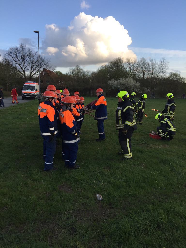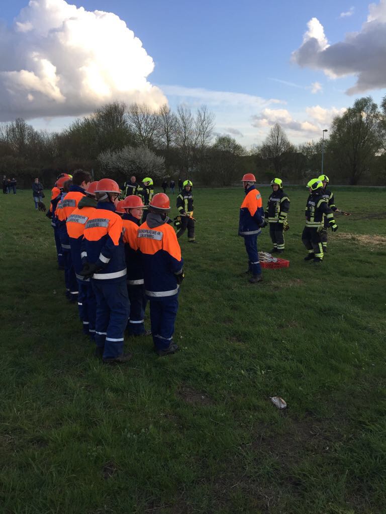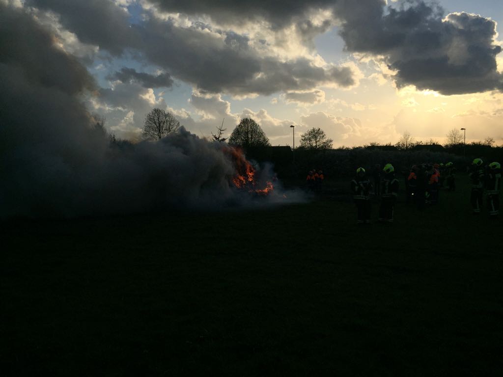 Traditionell veranstalte die Jugendfeuerwehr das Osterfeuer auch im Jahr 2017. Bereits seit den Morgenstunden bereiteten die Jugendlichen das Fest vor. Bürger lieferten mit Autos, Anhängern, Schubkarren und sogar Traktoren Grünschnitt aus den Gärten an. Mit Hilfe eines Frontladers wurde der Haufen für das Feuer meterhoch aufgetürmt. Am Nachmittag gingen dann die Vorbereitungen in die heiße Phase. Zelte für den Wurst- und Getränkeverkauf wurden aufgebaut. Die Stromversorgung hergestellt. Gegen 19 Uhr pilgerten dann hunderte Besucher zu der Wiese bei Famila. Bei bestem Wetter ging langsam die Sonne über der Feldmark unter und die Jugendlichen entzündeten das Osterfeuer mit Fackeln. In Reih und Glied marschierten die Kinder los, verteilten sich um den Berg aus Gestrüpp und Ästen und entfachten das Feuer. Bei wohliger Wärme ließen sich die Besucher die Wurst vom Grill, serviert vom Wehrführer persönlich schmecken. Bis spät in die Abendstunden freuten wir uns über reges Treiben rund um das Feuer. Wir freuen uns auf das nächste Jahr und wünschen Ihnen noch schöne Ostertage.