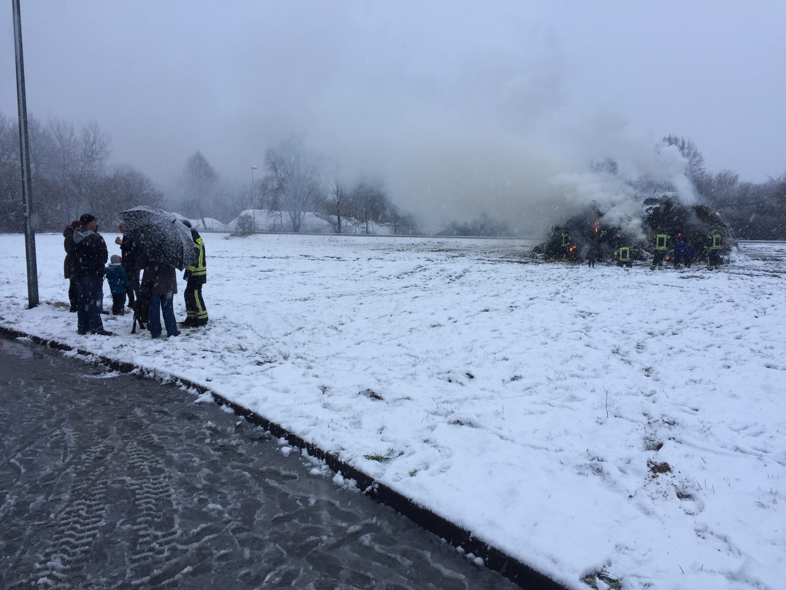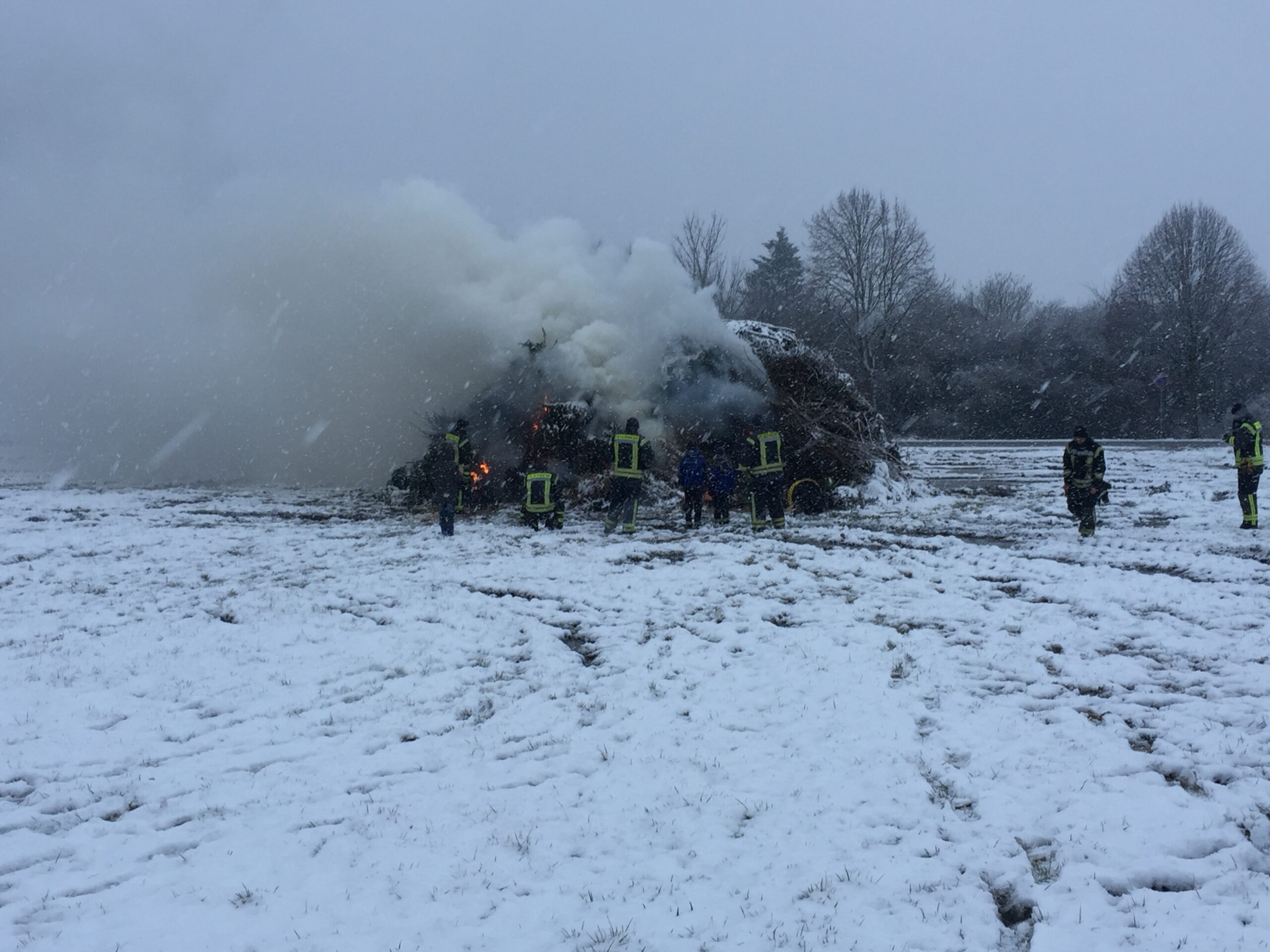 Auch im Jahr 2018 veranstaltete die Jugendfeuerwehr ihr traditionelles Osterfeuer auf der Wiese bei Famila. Dieses Jahr spielete das Wetter jedoch nicht mit. Zuerst nieselte es nur, jedoch wurde dieses stärker und schließlich fing es an zu schneien. Trotzdem enschloss sich der Jugendwart Thomas Hampicke das Osterfeuer stattfinden zu lassen. Und trotz des schlechten Wetters lieferten die Lauenburger Bürger fleißig ihre Grünabschnitte an, sodass sich am Ende ein doch sehr beachtlicher Haufen auf der Wiese auftürmte. Um 19 Uhr war es dann so weit: die Jugendfeuerwehr zündete zusammen mit einigen Minirettern das Osterfeuer an. Mithilfe von extra viel Stroh und einem Überdruckbelüfter war es kein Problem den Haufen zu entfachen. An einem Zelt konnte man sich bei einer Bratwurst stärken und bei heißem Kakao aufwärmen. Es war trotz der schwierigen Wetterlage eine gelundene Veranstaltung und wir freuen uns schon aufs nächste Jahr!