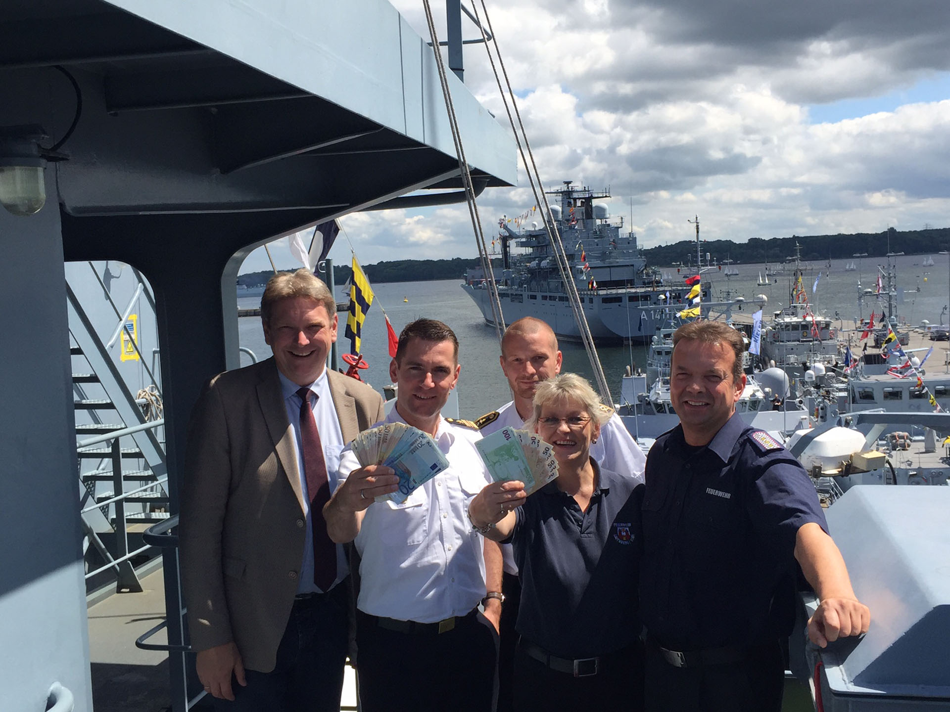 Große Freude für die Jugendfeuerwehr Lauenburg. Über eine Spende in Höhe von 1700,00€ aus dem Erbsensuppenverkauf, die von Besatzungsmitgliedern des Tender Elbe seit Jahren für den guten Zweck am Weihnachtsmarkt Wochenende in Lauenburg verkauft wird, darf sich in diesem Jahr die Jugendfeuerwehr freuen. Da der Tender Elbe sich schon in den Vorbereitungen für ein längeres Nato Manöver in Kiel befand, fuhren unser Bürgermeister Herr Thiede, Wehrführer Lars Heuer und die Jugendwartin Gabriela Fischer nach Kiel, um die Spende entgegenzunehmen. Herzlich wurden wir von Kapitänleutnant Andras Meier und Hauptbootsmann Sebastian Julius auf dem Tender Elbe empfangen. Nach einem gemeinsamen Mittagessen, überreichte Hauptbootsmann Julius uns die Spende. Das Geld werden wir sinnvoll für die Jugendarbeit einsetzen. Seit vielen Jahren pflegen wir mit den Besatzungsmitgliedern unseres Patenschiffs Tender Elbe ein freundschaftliches Verhältnis und freuen uns immer auf ein Wiedersehen. Die Jugendfeuerwehr sagt ,, Danke“ und wünscht immer eine gesunde Rückkehr von den Einsätzen.
