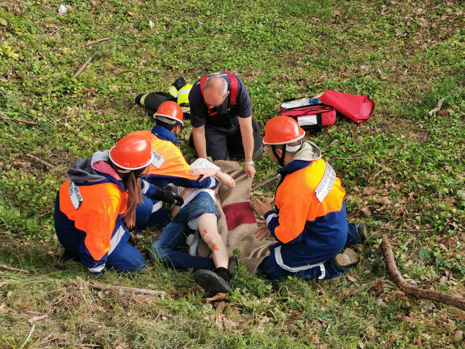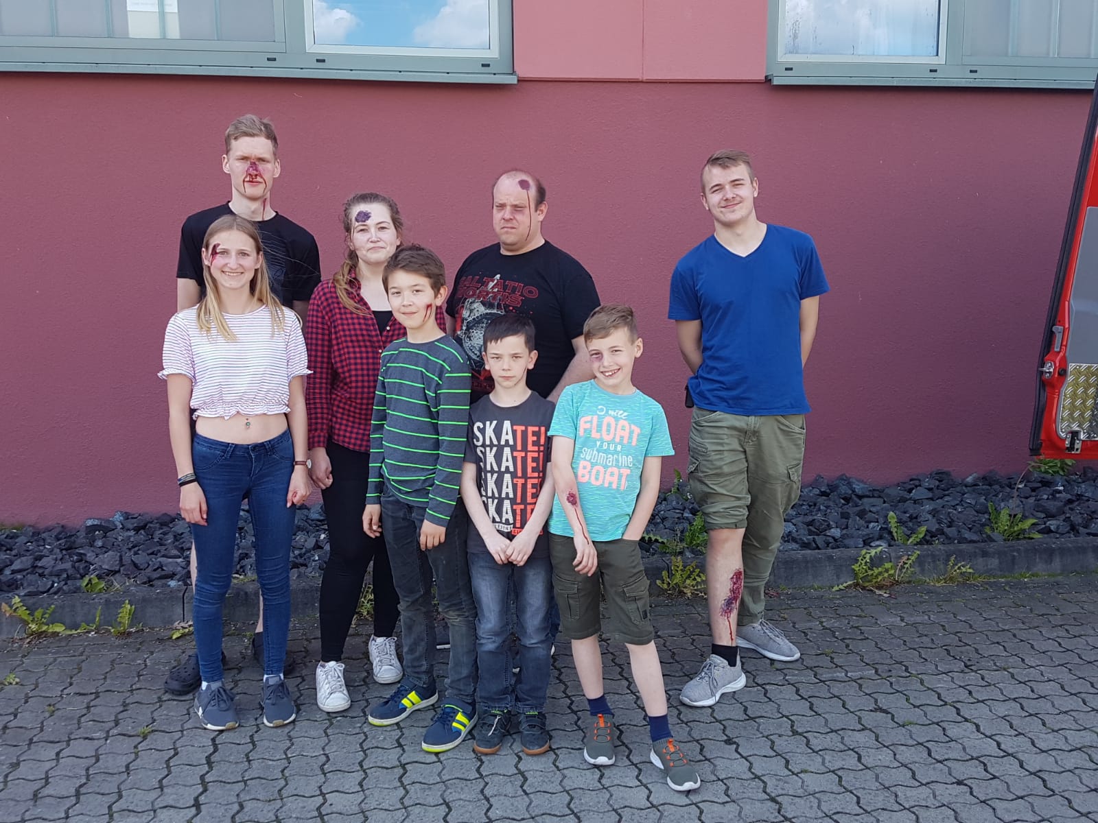 • An einige Kinder der Mini-Retter. Sie haben sich bereit erklärt bei der großen Abschlussübung einige der Verletzen zu spielen