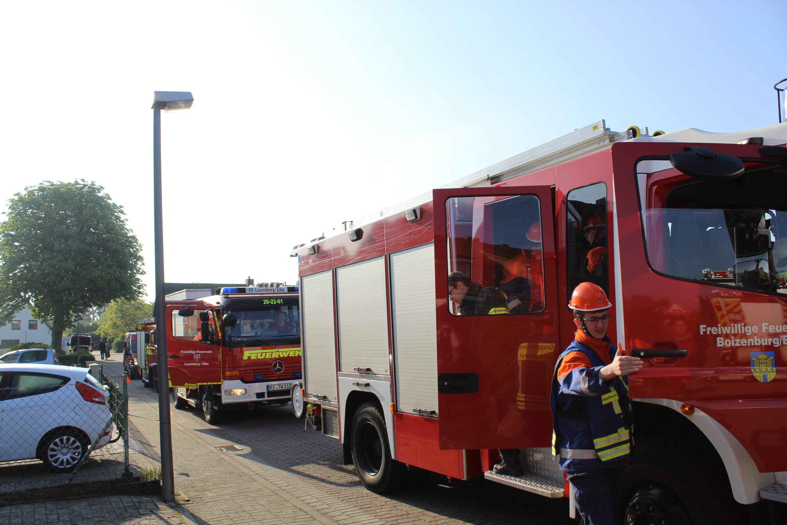 Von Freitag, den 17.05., auf Samstag, den 18.05., veranstaltete die Jugendfeuerwehr einen verlängerten Dienst. Damit handelt es sich um eine Ausbildungsveranstaltung. In einem Zeitraum von ca. 24 Stunden werden Übungsszenarien vorbereitet, die von der Jugendfeuerwehr abgearbeitet werden müssen. Damit die Übungen so realistisch wie möglich sind, wurden in Eigenleistung Atemschutzatrappen für die Jugendlichen gebaut und die Darsteller der Einsatzszenarien vor jeder Übung passend geschminkt. Ziel einer solchen Veranstaltung ist es, den Jugendlichen die Möglichkeit zu geben, ihr erlerntes Wissen praxisorientiert anzuwenden. An der Veranstaltung nahm auch die Jugendfeuerwehr Boizenburg mit einer Gruppe teil. Um 16:00 Uhr lies Julia Bollhorn, die Leiterin der Veranstaltung, die Jugendlichen zur Eröffnung antreten. Sie stellte den groben Tagesablauf vor und teilte die Kinder den verschiedenen Fahrzeugen zu. Zu Beginn wurden alle Fahrzeuge noch einmal genau unter die Lupe genommen. Wo befindet sich welche Gerätschaft und wie funktioniert sie nochmal? Die erste Übungslage lies nicht lange auf sich warten. Die Übungsleitstelle, geführt von Leon Stegen, bekam die Meldung, dass es eine Rauchentwicklung aus einem Schuppen gab. Der gesamte Löschzug wurde alarmiert und rückte zu der angegebenen Adresse aus. Mit Atemschutz-Übungsatrappen ausgerüstet, ging der erste Angrifftrupp vor zu Erkundung. Schnell wurde der Brandherd entdeckt. Eine defekte Lichterkette gab Anlass für die Rauchentwicklung. Nachden die Kette ins Freie gebracht und der Raum nach weiteren Brandquellen kontrolliert worden war, wurde der Raum belüftet. Kurze Zeit später rückte der Löschzug wieder zur Wache ein. An der Wache angekommen, wurden die Fahrzeuge wieder neu bestückt und für die nächste Übungslage fertig gemacht. Es folgten noch viele weitere Übungsszenarien. So zum Beispiel Brandmelderanlagen, Türöffnungen, Tragehilfen für den Retungsdienst, FEU 3 Schiff in Vollbrand, FEU G Unratbrand, eine Personensuche, kleine technische Hilfeleistungen wie Baum auf Straße, Ölspur oder Katze im Baum und als Abschlussübung ein Verkehrsunfall mit einem Linienbus und einem LKW. Alle Übungen wurden von den Jugendlichen vervorragend zusammen als Team abgearbeitet. Die vielen Übungsdienste zuvor hatten sich also ausgezahlt. Zum Abschluss wurden alle Szenarien noch mal nachbesprochen. Fragen und Unstimmigkeiten wurden diskutiert und geklärt. Um 16:00 Uhr hieß es dann noch mal Antreten zum Übungsende. An dieser Stelle möchten wir noch einmal DANKE sagen. Danke an alle fleißigen Helfer im Hintergrund, ohne die diese Veranstaltung nicht möglich gewesen wäre: