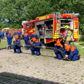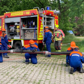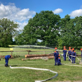 Am Samstag fand das Amtswehrfest der Feuerwehr Schnakenbek statt. Dort gab es verschiedene Vorführungen der umliegenden Gemeindefeuerwehren und verschiedene Fahrzeuge wurden ausgestellt. Gemeinsam mit der Jugendfeuerwehr Basedow durften auch wir uns mit Spielen für die kleinen Besucher präsentieren. An den Spritzwänden konnte mit kleinen Schläuchen das Löschen geübt werden. Außerdem konnten noch Kisten gegen eine Wand gestapelt werden. Später am Nachmittag durften wir gemeinsam mit der Jugendfeuerwehr Basedow einen Löschangriff bei offenem Gewässer vorführen. Wir, als Jugendfeuerwehr, hatten als Aufgabe die Wasserversorgung für die Fahrzeuge aufzubauen. Offene Gewässer sind zum Beispiel Seen oder Flüsse. Dieser wurde hier mit einem großem Stahlbehälter dargestellt. Routiniert und zügig konnten wir die Saugschläuche aufbauen und zu Wasser legen, so dass unter anderem auch unsere Kameraden der Jugendfeuerwehr Basedow am Strahlrohr vorne Wasser zum Löschen haben. Wir hatten einen sehr schönen Nachmittag und sehr viel Spaß.