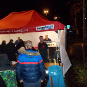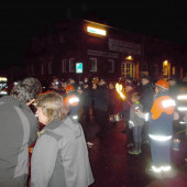 Trotz aufkommenden Regens ließen sich Samstagabend rund 500 Besucher des Lauenburger Laternenumzuges nicht davon abhalten einen Schritt vor die Tür zu setzen. Gegen 18:30 Uhr entfachte die Jugendfeuerwehr Ihre Fackeln, sie leuchteten den Musikanten vom Musikzug Lauenburg Süd der mit Blasmusik und Paukenschlag bekannte Lieder anstimmte. Unter Begleitung der Polizei ging es über den Triftweg auf die Reeperbahn, am Askanierhaus warteten bereits einige Bewohner des Pflegeheimes vor der Tür auf den Umzug. Der Musikzug widmete Ihnen zwei Lieder, darunter auch das bekannte „Ich gehe mit meiner Laterne…“ das für freudige Gesichter und großen Applaus bei den Bewohnern sorgte. Weiter ging es dann in den Röhrenkamp der uns schließlich auf die Zielgerade, die Juliusburger Landstraße und schließlich zu Famila geleitete. Dort wurden bereits am Nachmittag eine Grill- und Getränkestation aufgebaut. Die Massen versorgten sich mit Essen und warteten gespannt auf das große Feuerwerk. Unterstützt haben uns beim Verkauf, Mitglieder der Aktiven Wehr. Gegen 20 Uhr war es dann soweit! Ein lauter Knall und viele bunte Farben strahlten vom Himmel. Das Feuerwerk begann und beeindruckte mehrere Minuten die Besucher. Gold- und Silberregen, rote und blaue Explosionen am Himmel ließen auch über einige Regentropfen hinweg sehen.