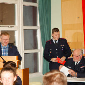 In den Grußworten der Gäste lobte Bürgervorsteher Dittmer die Jugendlichen. „Ihr macht Lauenburg weit über die Grenzen der Stadt bekannt“, lobte er und blickt zufrieden auf die sinnvolle Freizeitbeschäftigung der 26 Mitglieder. Auch Schnakenbeks Gemeindewehrführer Gerhard Bielenberg überbrachte neben einem Flachgeschenk lobende sowie dankende Worte. Vier Schnakenbeker Jugendliche werden derzeit in der Lauenburger Wehr ausgebildet, stehen nach ihrer Zeit der FF Schnakenbek für den Einsatzdienst bestens ausgebildet zur Verfügung. Auch die Grüße der Amtswehren konnte der Stellvertretende Amtswehrführer überbringen. Die Zusammenarbeit mit anderen Jugendwehren gelingt vorbildlich und sorgt für hohes Ansehen. Vertreter der Politik überbrachten Flachgeschenke, würdigten so die Arbeit in der Jugendfeuerwehr und lieferten die Grundlage, um gemeinsame Ausflüge zu unternehmen.