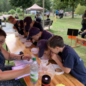 Seit 2012 wird im Nachbarort Boizenburg der FlorianTreff veranstaltet. Bei aller bestem Wetter fand er am Samstag zum achten Mal statt. Auch die Mini-Retter waren wieder mit einer Gruppe von 10 Kindern vertreten. Um 09:30 wurde der Startschuss gegeben und der FlorianTreff eröffnet. Es galt 20 verschiedene Stationen gemeinsam als Team zu bewältigen. Darunter waren Geschicklichkeitsaufgaben, Logik- und feuerwehrtechnische Fragen und auch sportliche Betätigungen. Aber nicht nur die Kinder mussten Aufgaben lösen, sondern auch für die Ausbilder gab es Aufgaben. So mussten geschichtliche, allgemeine und Scherzfragen beantwortet werden. An einer Station musste Seil gesprungen werden. Die erspielten Punkte kamen zu der Punktzahl der Kinder dazu. Während die Ergebnisse ausgewertet wurden, kühlten wir uns bei einem Eis ab. Zwar hat es am Ende nicht ganz für das Treppchen gereicht, aber trotzdem können wir mit unser Leistung zufrieden sein. Die Hauptsache ist ja sowieso, dass es allen Kindern Spaß gemacht hat. Und das hat es auf jeden Fall! Zufrieden ging es zum Teil auch schlafend zurück nach Lauenburg.