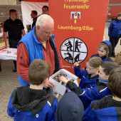 Auch die Mini-Retter haben sich mit einem Stand präsentiert. Es wurden selbstgemachte Muffins, Waffeln und Popcorn angeboten. Aber auch verschiedene Kaffeekreationen konnten erstanden werden. Einige der Kinder sind über den Marktplatz gegangen und haben fleißig die Werbetrommel gerührt. Vorbeikommende Kinder konnten ihr Können an der Feuerlöschwand unter Beweis stellen oder ein Feuerwehrauto basteln. Außerdem lagen verschiedene Informationsmaterialien aus zum Thema Brandschutzerziehung. Aus unserer Sicht war es eine gelungende Veranstaltung.