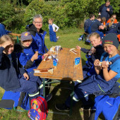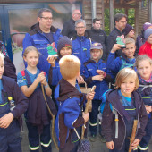 Nachdem alle Fragen beantwortet waren konnten sich die Kinder und Betreuer mit einer Bratwurst und Getränken stärken, bevor es auch schon kurz danach zu der Siegerehrung ging. Alle Gruppen erhielten einen kleinen Pokal und eine Naschtüte und jedes Kind ein Armband.