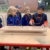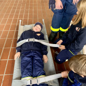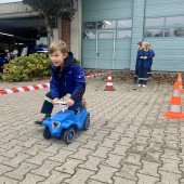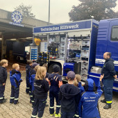 Heute hatten die Mini-Retter die Möglichkeit, sich das THW, welches ebenfalls am K-Zentrum stationiert ist, mal genauer anzuschauen. Der Leiter des THW, Michael Winter, höchstpersönlich hatte sich die Zeit genommen, um den Mini-Retter das breite Aufgabenspektrum näher zu bringen. Bei der Besichtigung des Rüstwagens konnten wir viele Parallelen zu den bekannten Feuerwehrfahrzeugen feststellen. So zum Beispiel hat das THW ebenfalls Atemschutzgeräte oder aber auch einen Stromerzeuger, Schere und Spreizer und Motorsägen. Aber vieles war auch neu. Vor allem die Ausrüstung für die Holzbearbeitung. Von der Handstichsäge bis Ziehmesser ist alles dabei. Aber auch viel Werkzeug, dass für spezielle Einsatzlagen sehr hilfreich sein kann, ist auf diesem Fahrzeug verlastet. Selbst die Betreuer staunten beim Anblick der Ausrüstung. Aber nicht nur angucken konnten wir uns viel, sondern durften wir auch ausprobieren. Mit der Hand haben wir unter anderem ein Loch in einen Balken gebohrt und mit der Handstichsäge ein Stück Holz abgeschnitten. Auch der Spaß kam nicht zu kurz: Es gab Klingeldrähte, wo die Mini-Retter ihre Feinmotorik unter Beweis stellen konnten. Zum Abschluss wurde noch ein Bobycar-Rennen veranstaltet.