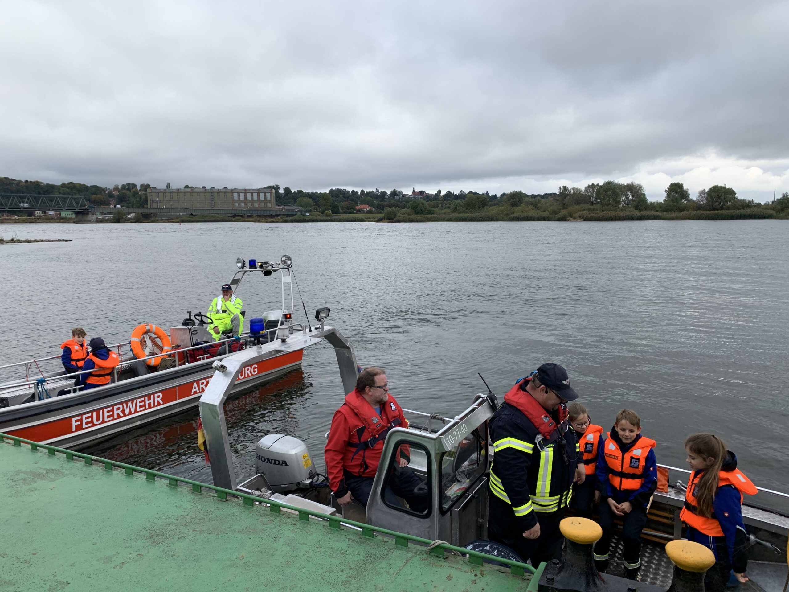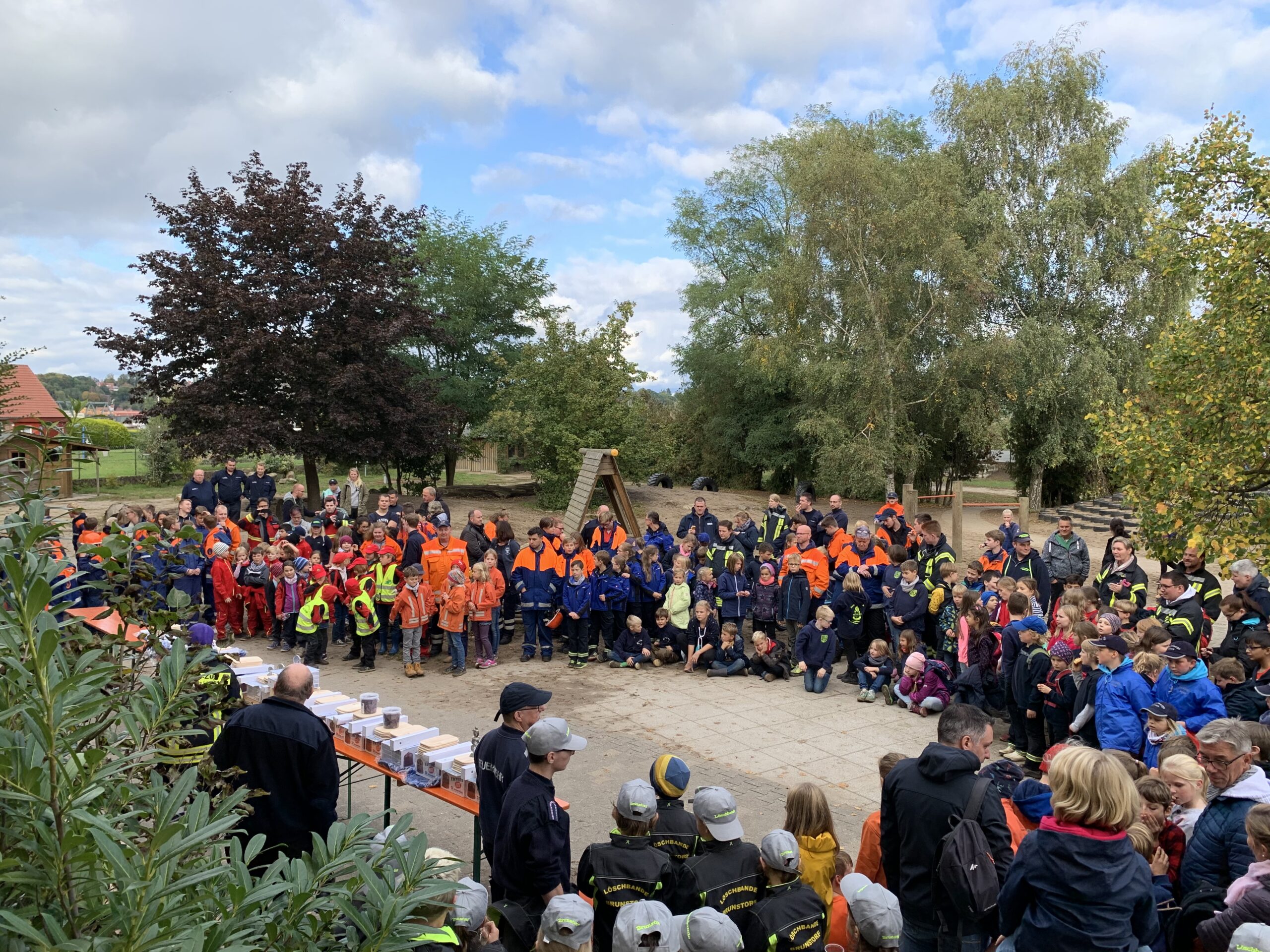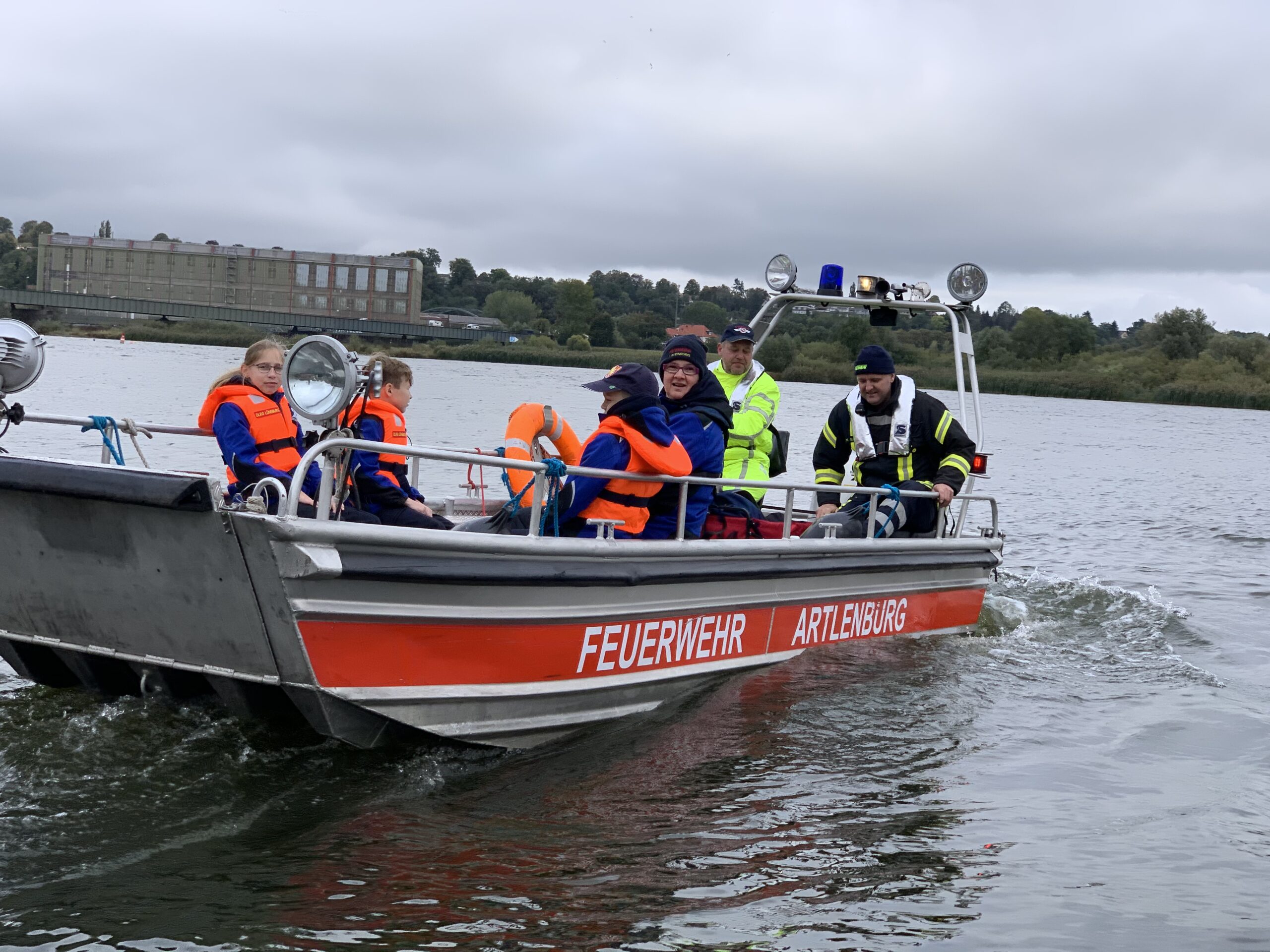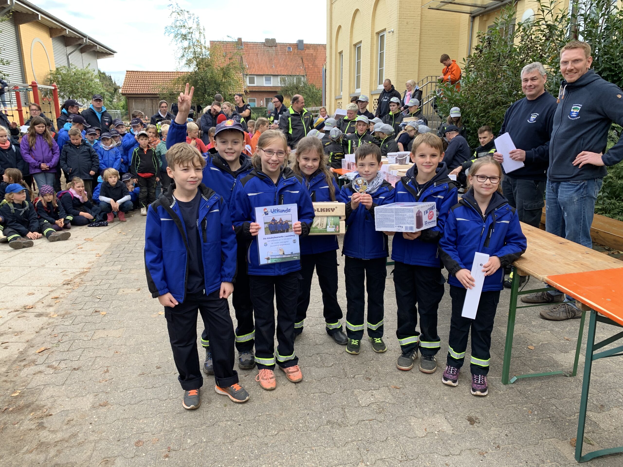Wie in jedem Jahr fand am Tag der Deutschen Einheit der Elbmarschmarsch in Hohnstorf statt. Dabei handelt es sich um eine ca. 3 km lange Strecke, die einen einmal um Hohnstorf führt. schon seit einigen Jahren nehmen die Mini-Retter zusammen mit der Jugendfeuerwehr daran Teil. In diesem Jahr konnte die Veranstaltung ein kleines Jubiläum feiern. Seit nun mehr 10 Jahren findet sie an der Grundschule statt. Bezüglich dieses Anlasses haben sich die Veranstalter ein paar Besonderheiten einfallen lassen. Um 11.00 Uhr hieß es Abfahrt am K-Zentrum zusammen mit der Jugendfeuerwehr. Vor Ort wurde uns noch mal kurz die Wegstrecke erklärt und uns 3 Symbole gezeigt. „Die sind später noch wichtig!“ sagte der Jugendwart aus Hohnstorf. Noch schnell ein Foto gemacht und dann konnte es auch schon los gehen. Aber nicht so wie die Jahre zuvor zu Fuß den Deich entlang, sondern in diesem Jahr wurden wir mit Booten Elbabwärts gefahren. Das war natürlich schon mal das erste Highlight für die Kids. Gut gelaunt gingen wir von Bord und stellten uns der ersten Aufgabe. Hier mussten kleine Bilder verschiedenen Fernsehsendungen zugeordnet und diese dann benannt werden. Gar kein Problem für uns! Weiter ging es zu Station 2. Die Aufgabe war es, so viele Kastanien wie möglich in eine kleine Schüssel zu stapeln. Auch diese Station bestanden wir mit Bravour. Bei Station 3 ging es sportlicher her. Kugelstoßen war angesagt. Insgesamt 43m wurde ein Lederball von den Mini-Rettern weit gestoßen. Die vierte Aufgabe war gleich in Sichtweite. Hier musste ein Ball möglichst oft mit einem Klettpad gefangen werden. Bei Station 5 stand Erste Hilfe auf dem Plan. Leon, einer der Ausbilder, musste möglichst schnell verbunden werden. Gar kein Problem, da bei den Mini-Rettern Erste Hilfe fast jeden Dienst geübt wird. Bis zu Station 6 musste ein etwas weiterer Weg zurück gelegt werden. Dort angekommen, mussten 4 Tischtennisbälle möglichst oft in 3 Minuten in einen Hula-Hoop-Reifen gerollt werden. Station 7 war auf dem Fußballplatz. Und natürlich war auch da auch Fußball dran. Der Ball musste durch einen kleinen Slalom gedribbelt und dann aufs Tor geschossen werden. Hier kamen die Kids, die neben den Mini-Rettern noch Fußball spielen, voll auf ihre Kosten. Station 8 war leicht schulisch angehaucht. Es galt einen Bleistift in 3 Minuten möglichst klein anzuspitzen. Station 9 war dann im Feuerwehrhaus. Hier musste eine Colaflasche möglichst oft mit einem Tischtennisball umgerollt werden. Die letzte Station führte uns dann wieder zurück zur Schule. Hier musste eine Strecke mit Colakisten abgegangen werden. Alle Kinder standen auf einer Kiste und dann musste immer die letzte Kiste nach vorne gegeben werden, um vorwärts zu kommen. 20m weit sind die Kinder gekommen. Nun stand noch die Zusatzaufgabe aus. Hier spielten die Symbole vom Anfang eine Rolle. Diese mussten mit Hilfe von 7 verschiedenen Formen nachgelegt werden. Fast hätten wir es geschafft, aber dann hat uns die Zeit einen Strich durch die Rechnung gemacht. Egal. Vor Siegerehrung wurde sich noch bei Pommes und Bratwurst gestärkt. Um 16.00 Uhr war dann die Siegerehrung. Gespannt warteten wir auf das Ergebnis. 23 Kinderfeuerwehren waren angetreten. “ Und der erste Platz geht an die Mini-Retter aus Lauenburg“ verkündete der Gemeindewehrführer aus Hohnstorf stolz. Jubelnd gingen alle Kids nach vorne und holten sich ihren Preis ab. Es gab für alle Urkunden, einen kleinen Pokal, eine Grillzange und ein Wikingerschachspiel. Das war natürlich der beste Abschluss für die Veranstaltung. Glücklich und stolz ging es dann wieder nach Lauenburg.