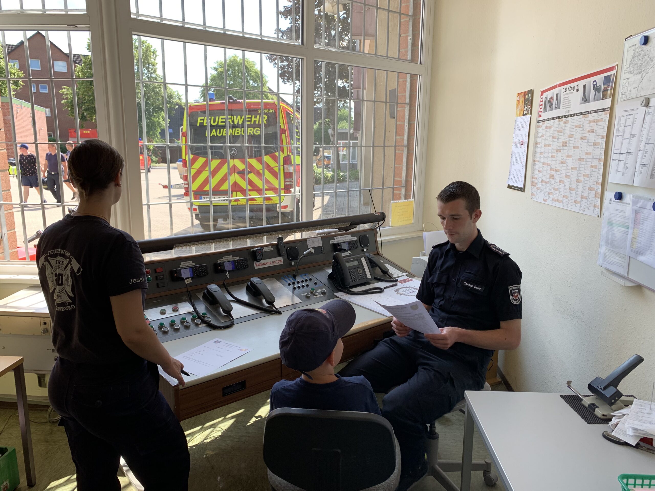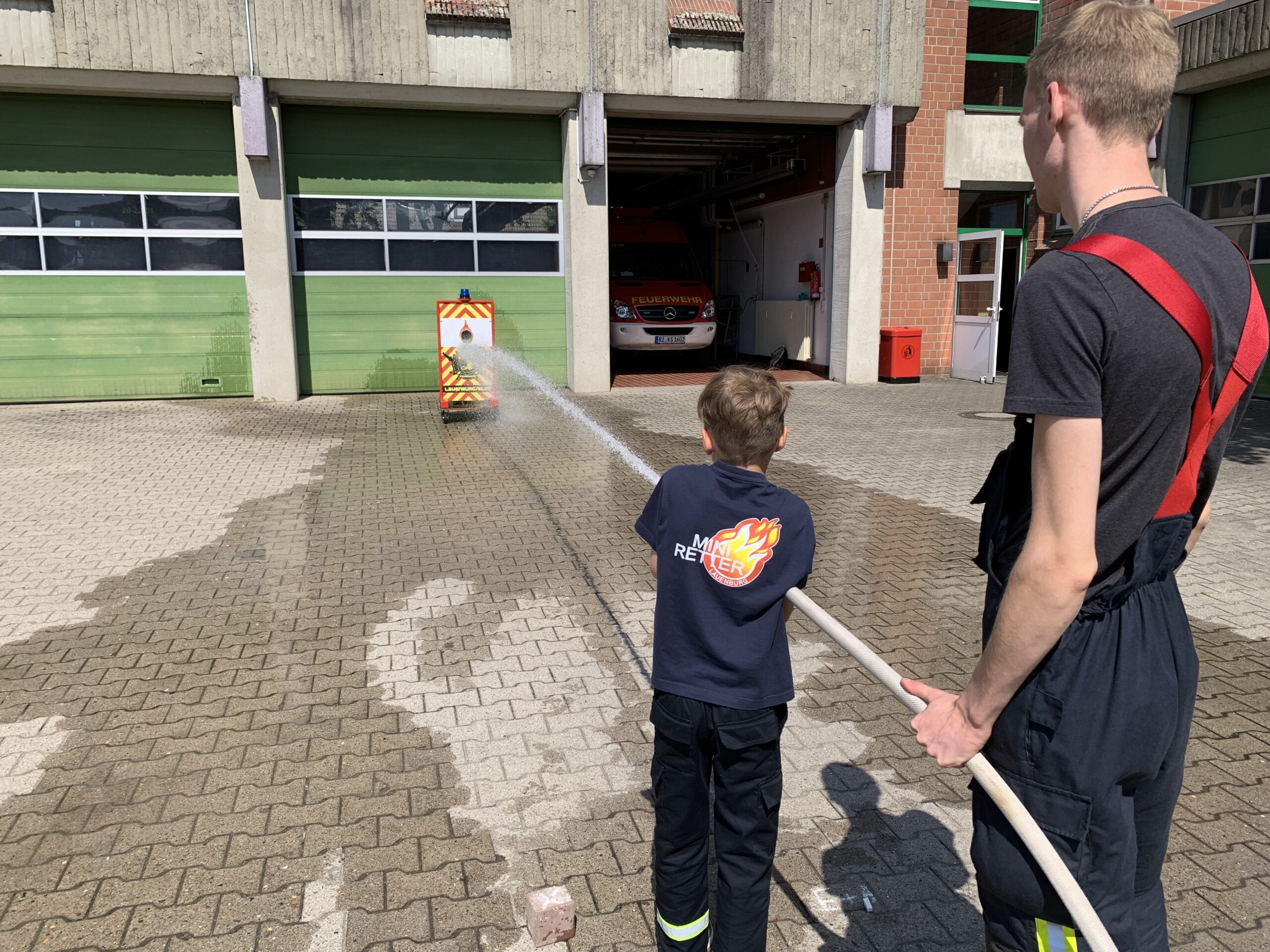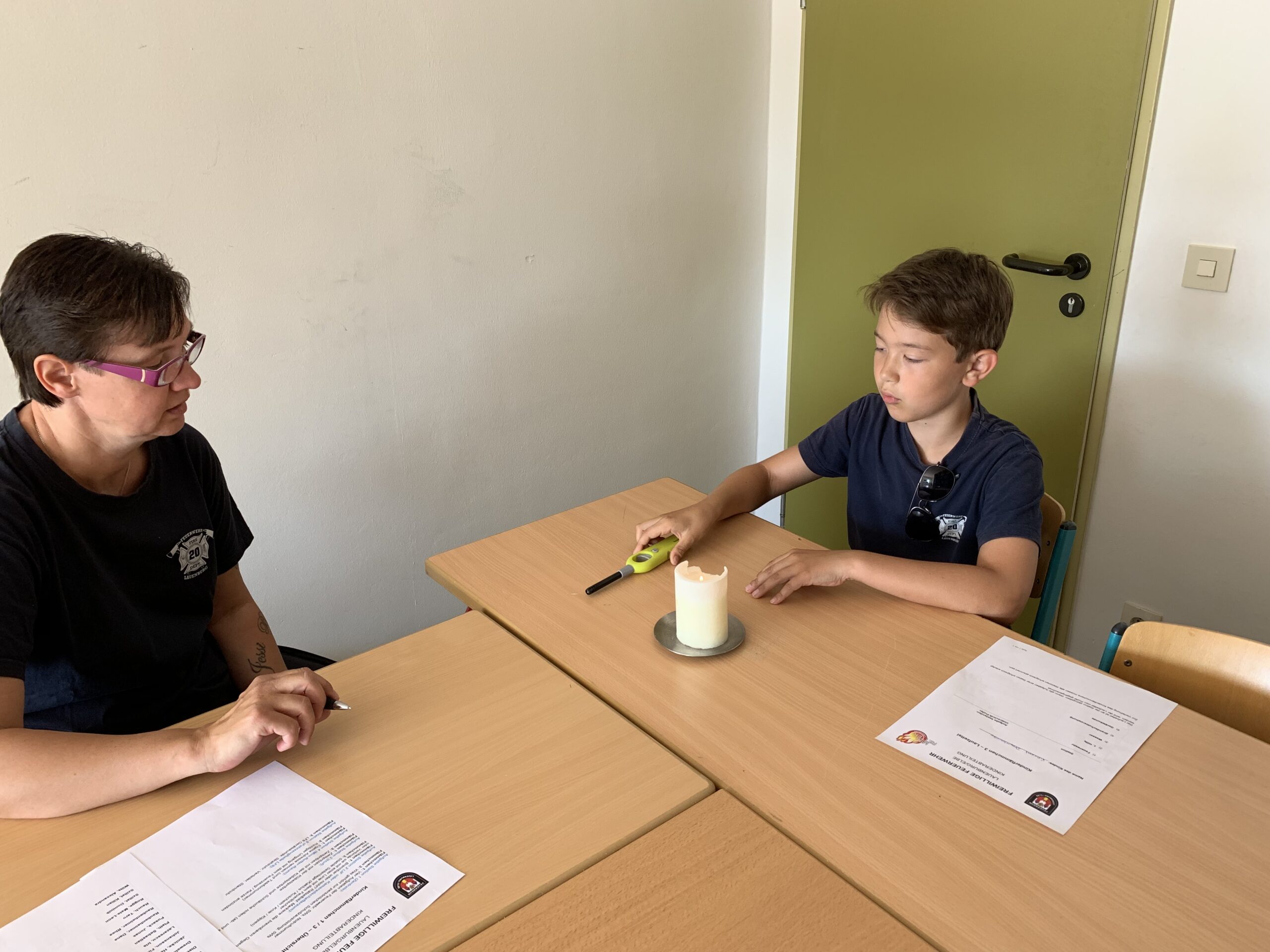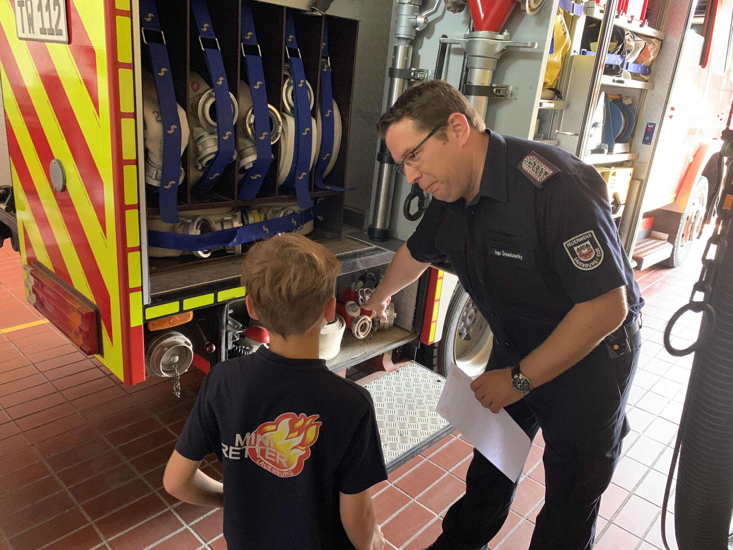 Am 22.06.2019 war es wieder einmal so weit. Die Abnahme des Kindesflämmchens stand an. Einmal im Jahr legen die Kinder der Mini-Retter eine Prüfung ab, in der das zuvor gewonnene Wissen abgefragt wird. Um 15:00 Uhr hieß es Antreten. Jeder bekam seine Laufkarte und machte sich auf zu den Stationen. An der ersten Station mussten die Komponenten der persönliche Schutzkleidung und die „Fünf W’s“ genannt werden. Bei der zweiten Station ging es um das Thema Feuer. Wie zünde ich eine Kerze sicher mit Streichhölzern oder einem Feuerzeug an? Unter Aufsicht musste jeder dann einmal eine Kerze mit einem Feuerzeug anzünden. Bei der dritten Station kam die Erste Hilfe auf den Prüfstand. Es galt eine Betreuerin in die stabile Seitenlage zu bringen. Die Station vier war wohl am interessantesten. Zuerst musste ein D-Schlauch ausgerollt werden, dann ein Strahlrohr angeschlossen und zu guter letzt auf die Spritzwand gespritzt werden. Bei der letzten Station ging es um Feuerwehrarmaturen. Verschiedene Teile, wie Standrohr oder Verteiler mussten im Fahrzeug gezeigt und erklärt werden. Voller Anspannung gaben die Prüflinge ihre Laufkarten ab. Die Prüfungskommission zog sich zurück, um das Ergebnis auszuwerten. Wenig später verkündete Gemeindewehrführer Lars Heuer das Ergebnis. ALLE HABEN BESTANDEN! Die große Freude stand allen Kindern ins Gesicht geschrieben. Lars überreichte zusammen mit Anja Pätzold und Dennis Lühr die neuen Flämmchenstecker. Zusammen mit den Eltern und Geschwistern klang der Abend bei Grillgut und Salaten aus.
