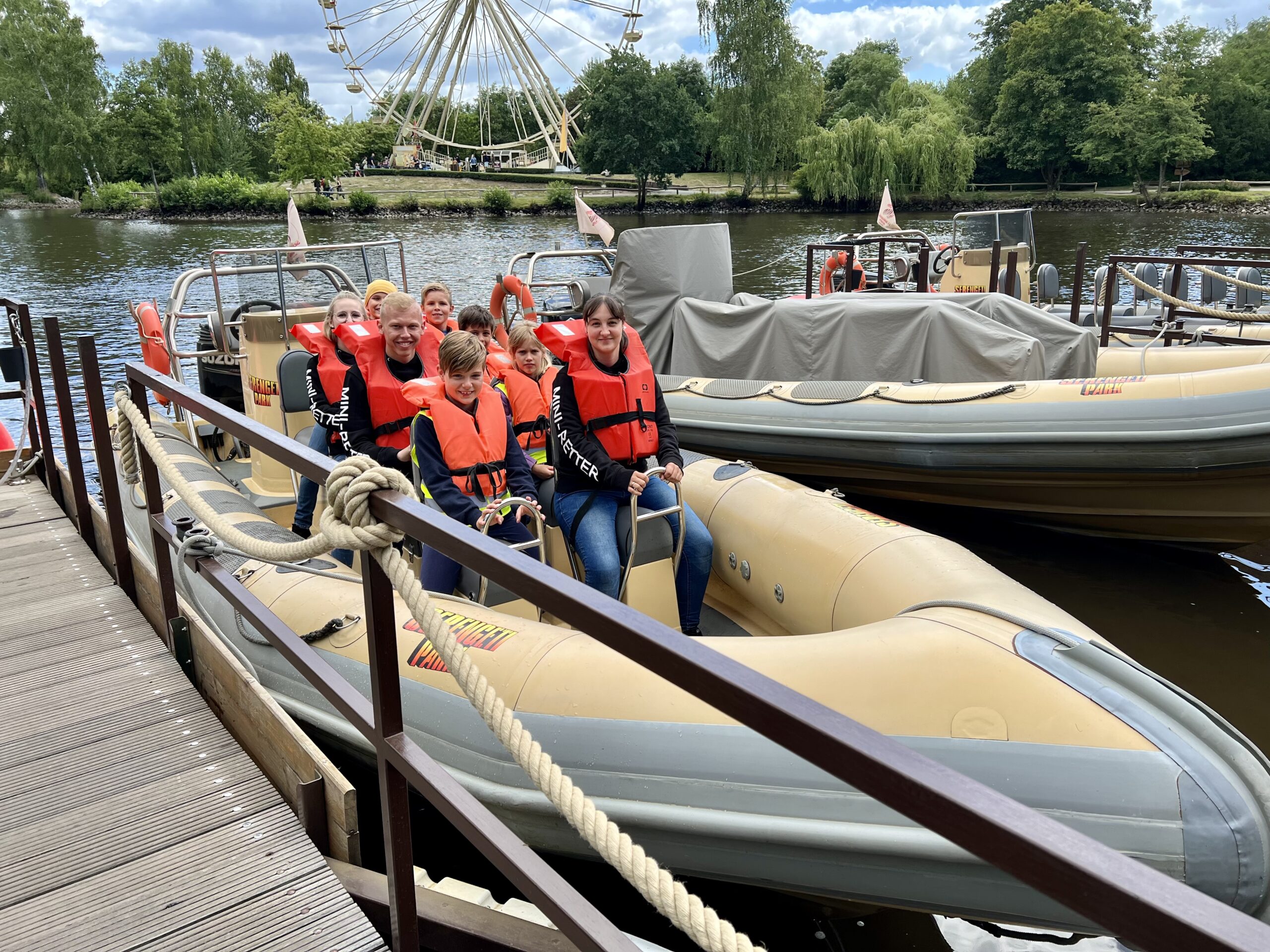 Traditionell machen die Mini-Retter immer am Ende des Jahres als Abschluss einen Ausflug. Mal ging es ins Tobeland oder zum FIZ nach Hamburg. Aufgrund von Corona und den daraus resultierenden Auflagen für die Feuerwehren machten solche Unternehmungen nicht möglich. Als kleinen Ersatz hatte sich die Leiterin Anja Pätzold dazu entschieden am Anfang der Sommerferien einen Ausflug zu machen. Dabei fiel die Wahl auf den Serengeti Park Hohenhagen. Gleich morgens um Acht ging es los. Vor Ort angekommen haben wir zuerst die Safari-Tour gemacht. Mit dem Bus ging es durch die verschiedenen Freilaufgehege, wo die Tiere in ihrem natürlichen Lebensraum zu bewundern sind. Giraffen, Zebras, verschiedenste Antilopen und Hirsche, Tiger, Löwen, Elefanten, Affen, Nashörner und vieles mehr gab es zu entdecken und beobachten. Der Busfahrer hat uns immer einige Fakten über die Tiere und ihre Herkunft erzählt. Aber auch der eine oder andere Scherz war dabei. Nach der einstündigen Tour ging wir dann weiter in den Park. Hier gab es noch weitere Tiere zum Besichtigen. Aber auch jede Menge Fahrgeschäfte und Spielmöglichkeiten. Es gab Achterbahnen für Groß und Klein, riesige Spielplätze zum Toben und rasante Bootstouren. Von Attraktion zu Attraktion haben wir uns durch den Park gearbeitet. Highlights waren auf alle Fälle die Speedboat-Fahrt, der Streichelzoo und der Affenpfad. Hierbei konnten wir durch die Gehege der verschiedenen Affen gehen und diese aus nächster Nähe bestaunen. Teilweise waren die Affen schon so zutraulich, dass sie einem aus der Hand gefressen haben oder kurzerhand auf uns raufgeklettert sind. Ein sehr cooles Erlebnis. Zwischendurch gab es Pausen damit sich alle stärken konnten. Gegen 18:00 Uhr traten wir die Heimreise an. Allen Kinder hat es riesigen Spaß gemacht. Sie strahlten immer noch als wir sie ihren Eltern übergeben haben.
